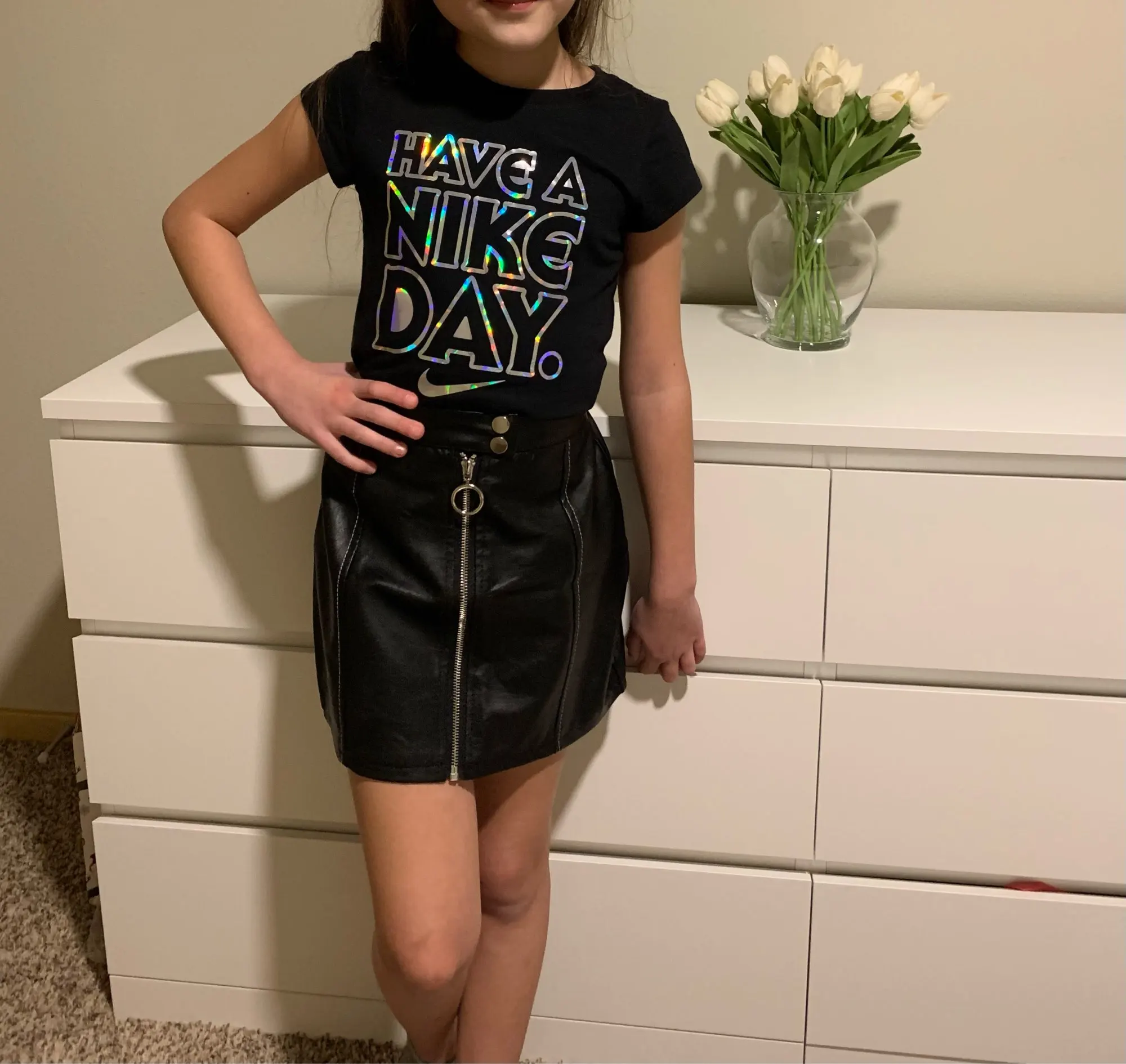 Faldas de cuero sintético para niñas, minifalda informal de piel sintética para primavera y otoño, 110-160cm