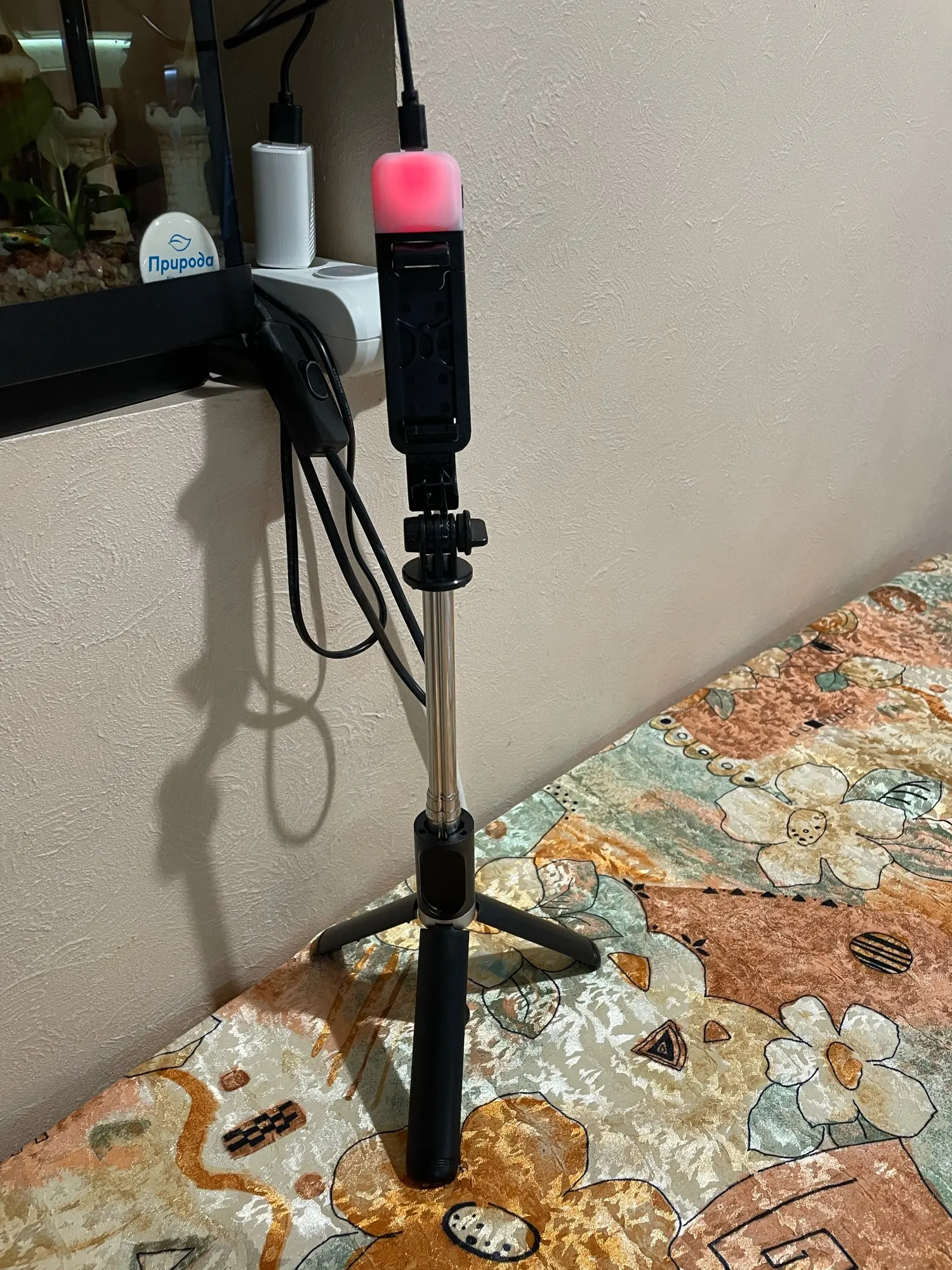 FANGTUOSI inalámbrico bluetooth selfie stick plegable mini trípode con luz de relleno el obturador de control para IOS Android