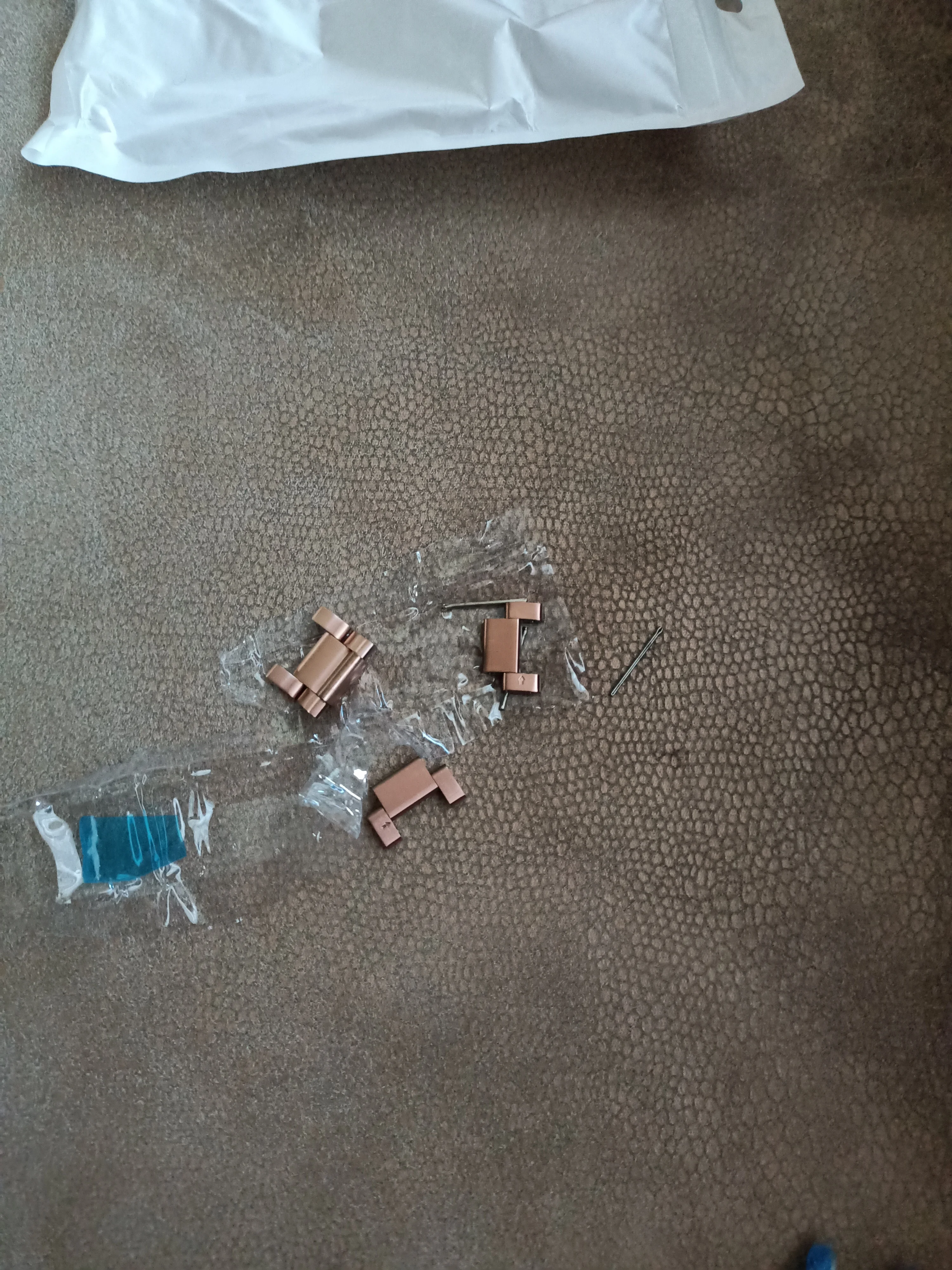 La calidad es buena pero los enganches están muy duros y aunque vienen herramientas para poder quitarlos son inútiles. Tienes que dar golpes hasta que consigues sacarlo. Una vez conseguido la correa está muy bien. El color es idéntico al del reloj.