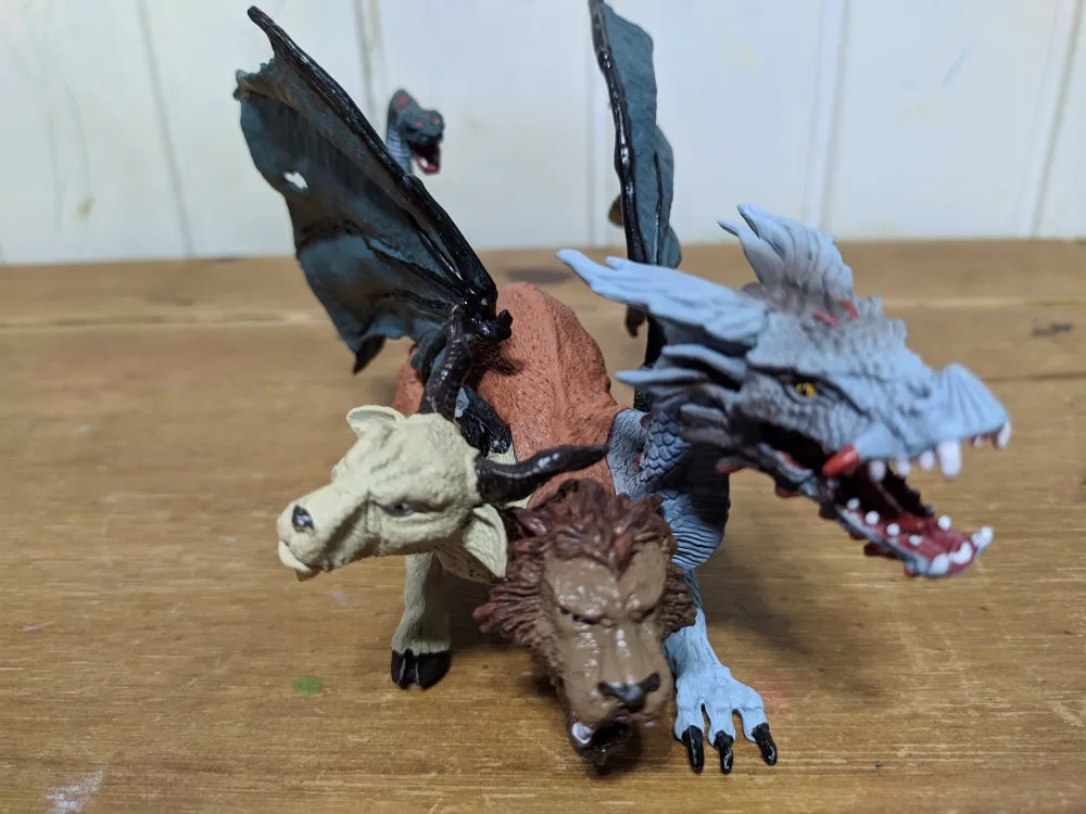 Figura de acción de simulación nueva para niños, modelo de dinosaurio mitológico de tres cabezas, figura de acción de dragón, colección de decoración para el hogar