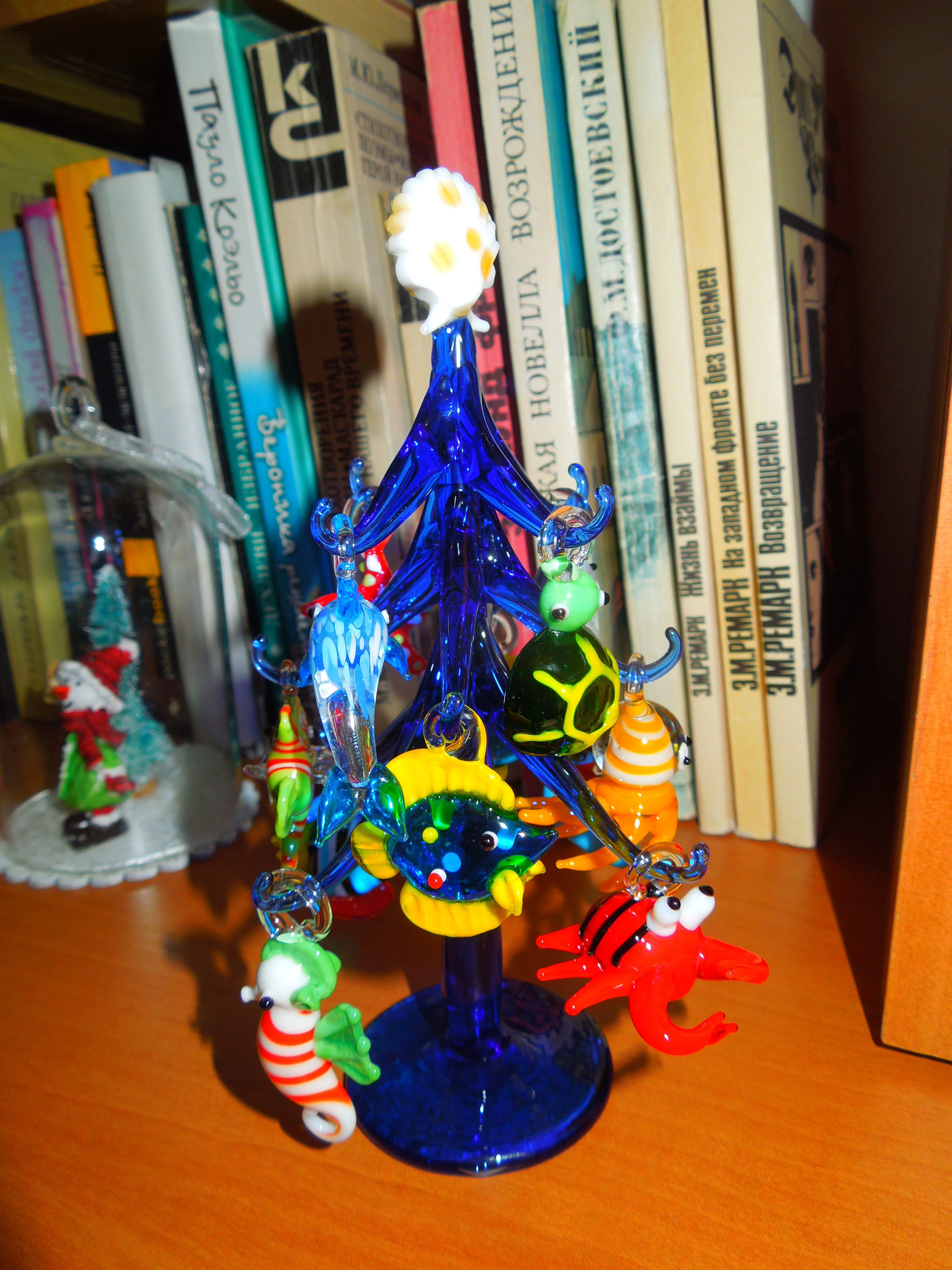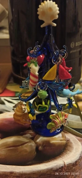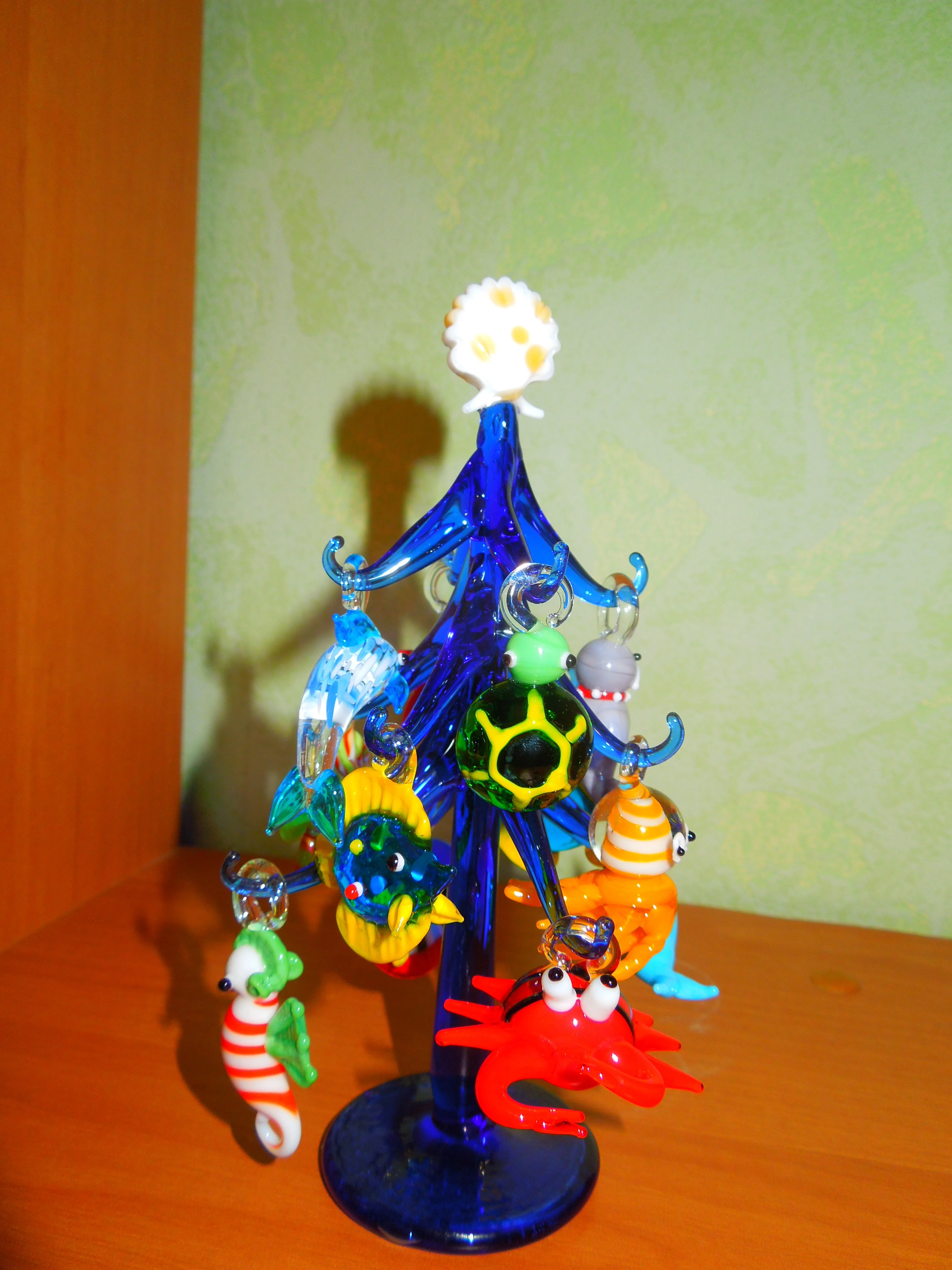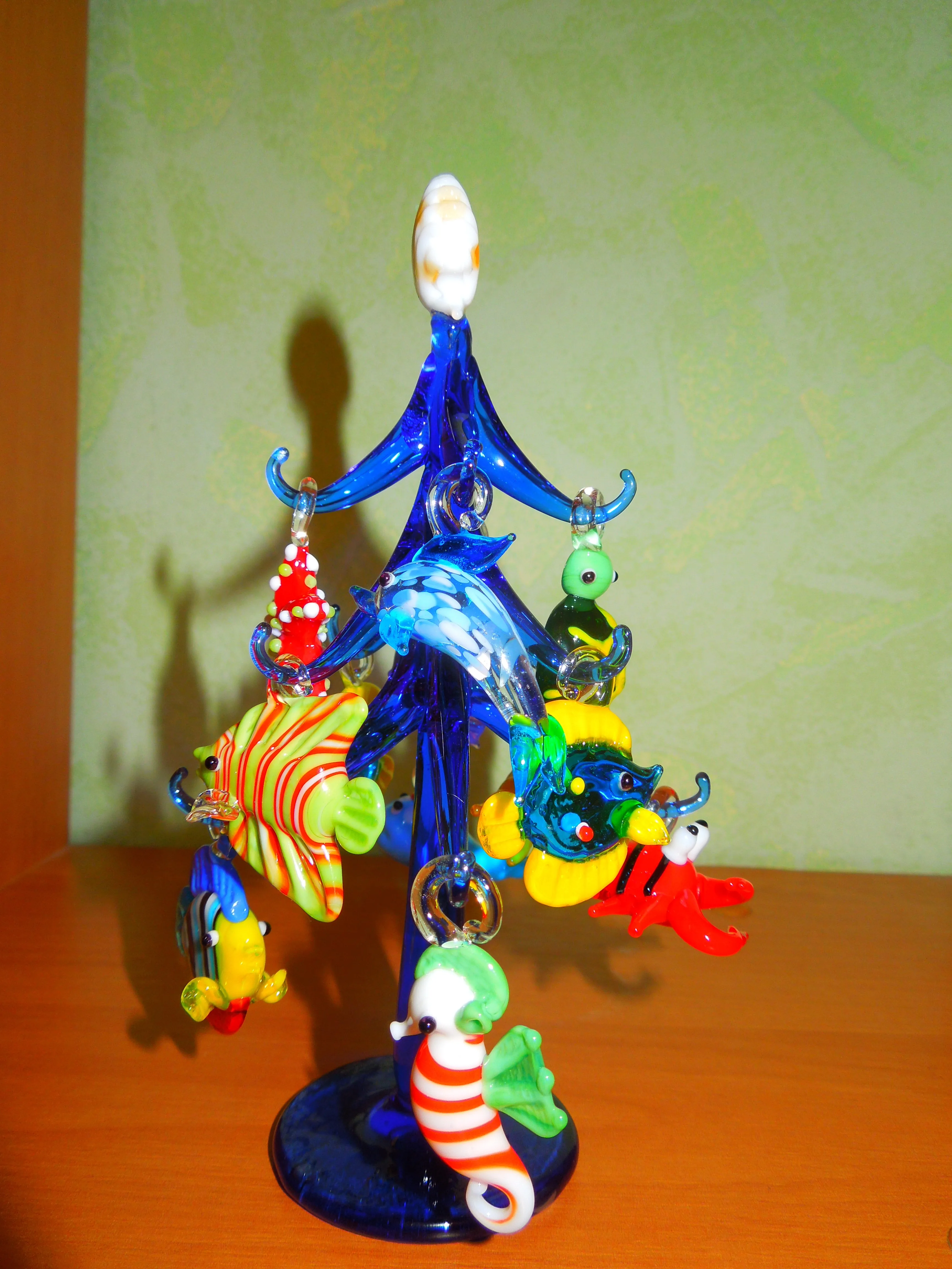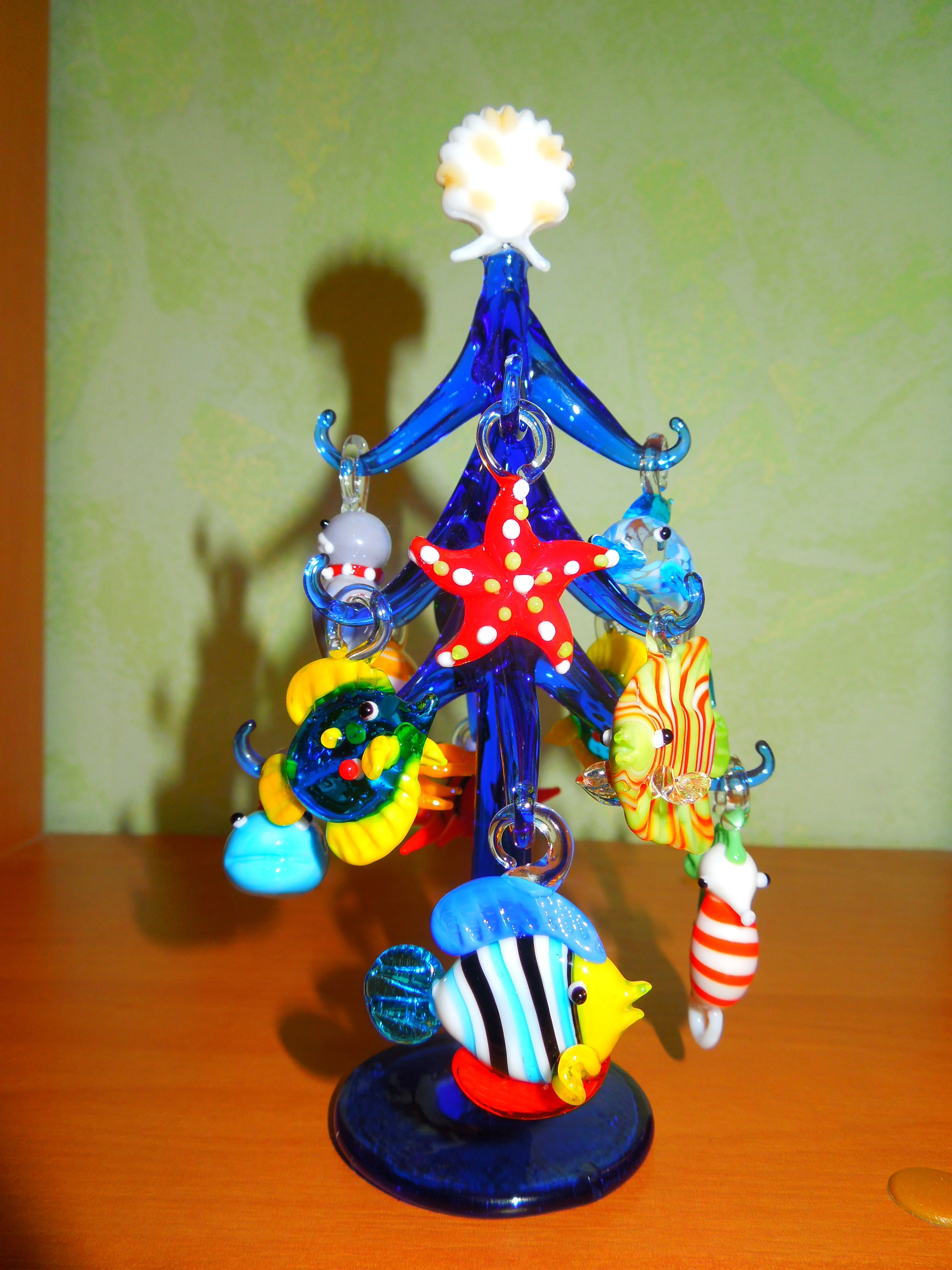 Figura de cristal de Murano azul oscuro hecho a mano, adorno de forma del árbol de Navidad para el hogar, acuario, decoración con 12 uds, colgante de Animal marino