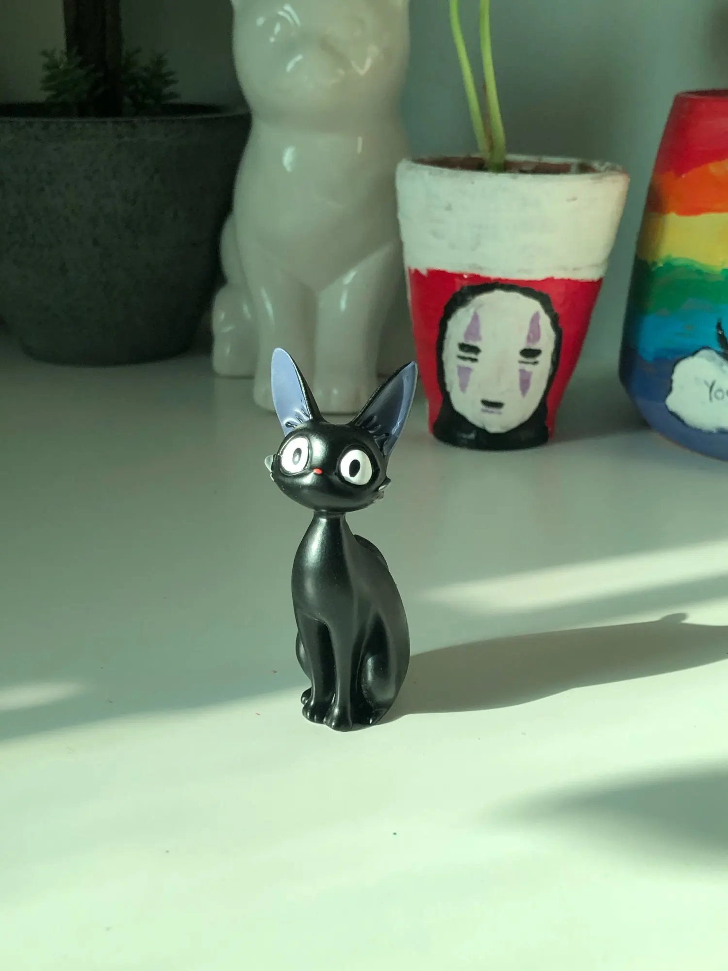 Figuras de gatos negros de dibujos animados, figuritas japonesas de resina Kawaii, decoración de escritorio, miniaturas de jardín, decoración del hogar