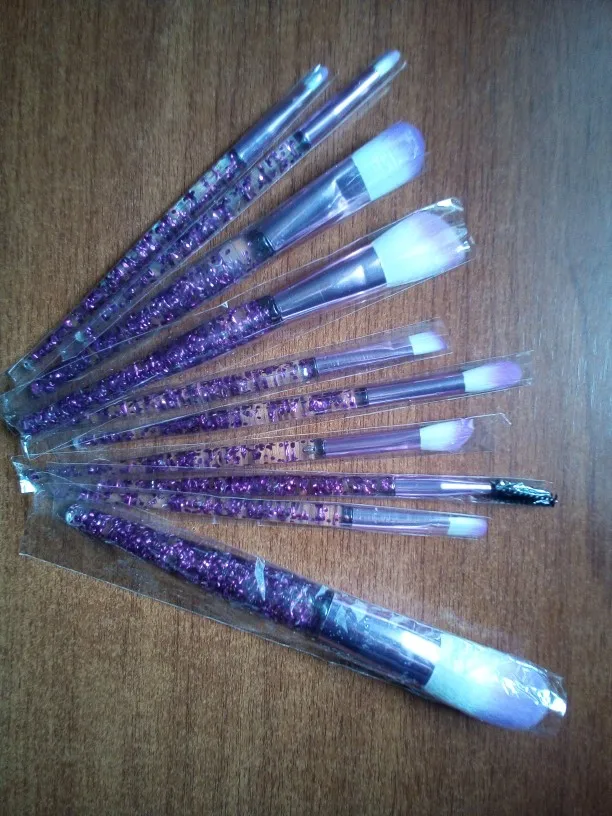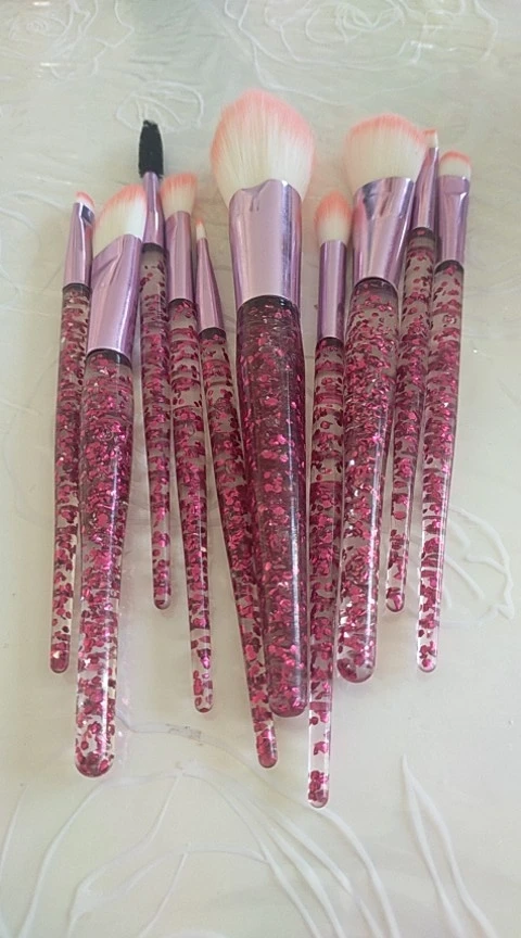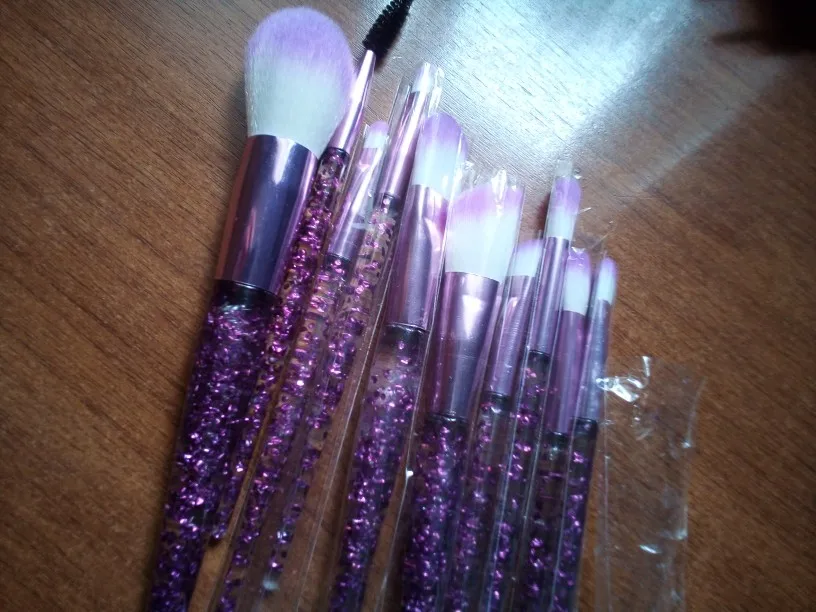 FLD 10 piezas brillo pinceles de maquillaje conjunto cristal mango de cepillo de polvo de la Fundación ceja cara Mascara de delineador de ojos Kits de herramientas