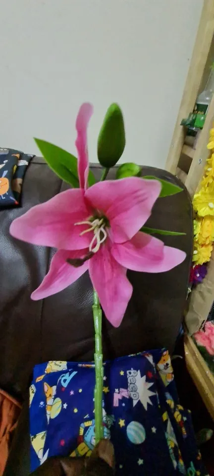 Flor de lirio de seda Artificial de PVC, decoración de jardín, hogar, decoración de granja, Festival, regalo A6540, 3 cabezales, 1 unidad