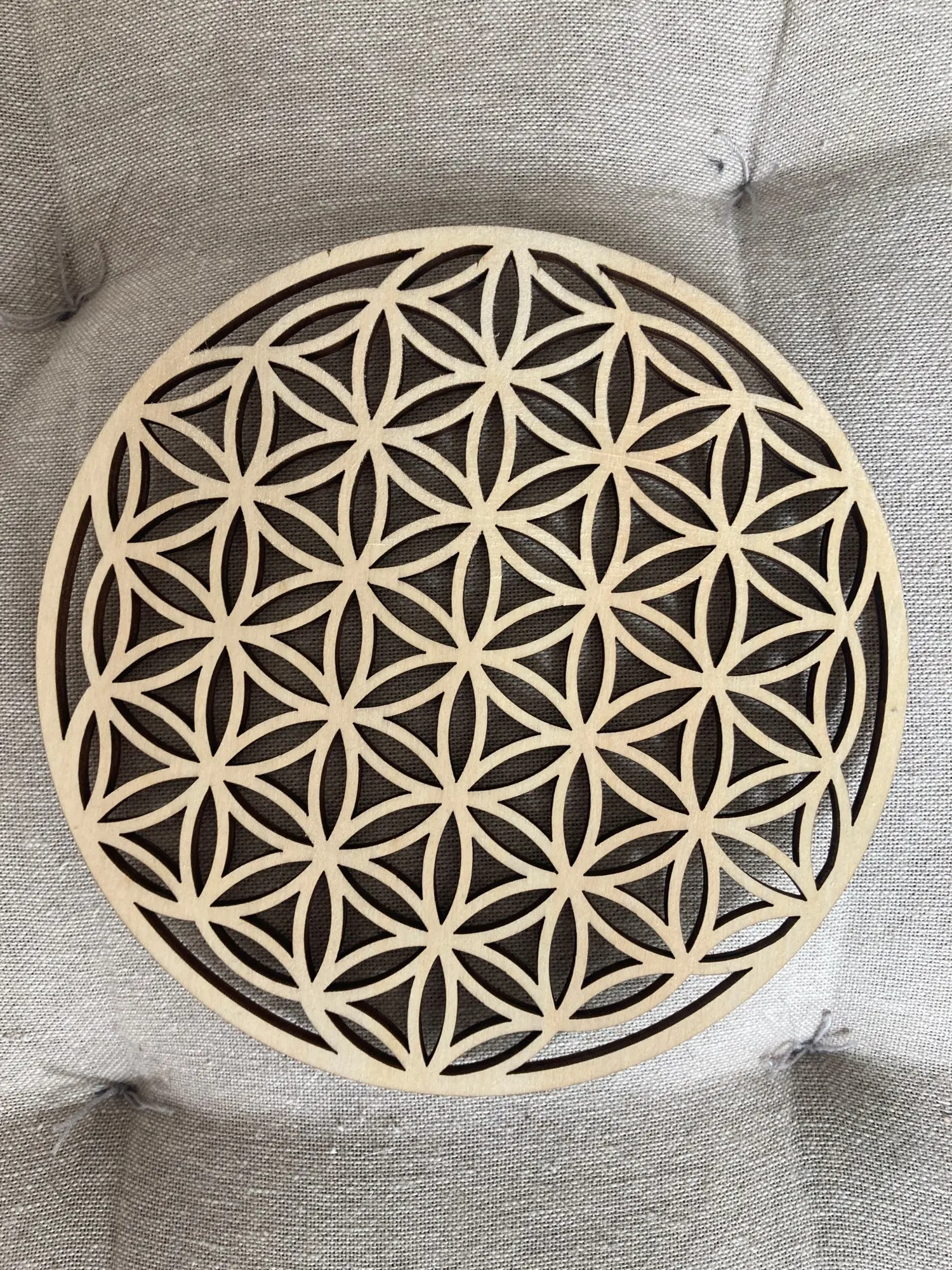 Flor geométrica sagrada de la vida, estera de energía, rebanada de madera, base de purificación, cristales curativos, disco como posavasos para decoración de pared del hogar