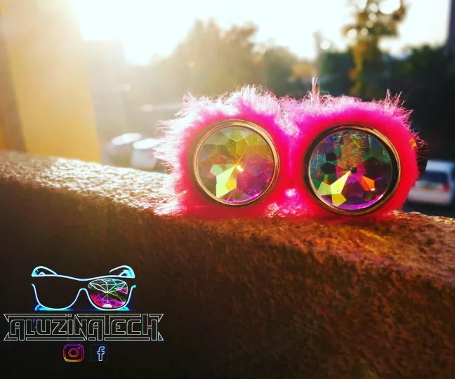 FLORATA caleidoscopio lente Rave Festival Fiesta gafas EDM Cosplay Punk de vidrio Vintage gafas Rosa lindo peludo Decoración