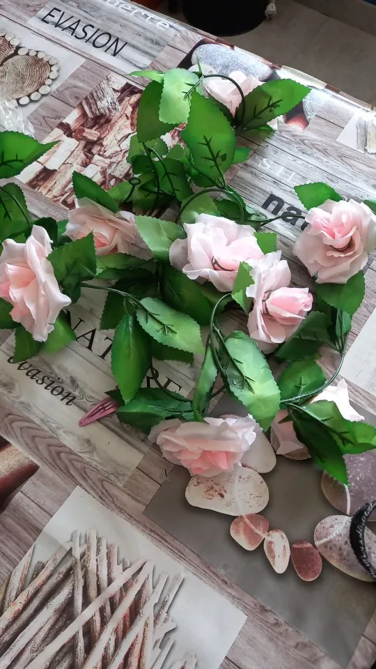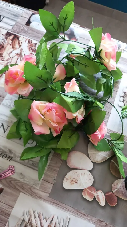 Flores artificiales de seda de vid de rosa para la decoración de la pared plantas falsas de ratán guirnalda de hojas decoración romántica del hogar de la boda