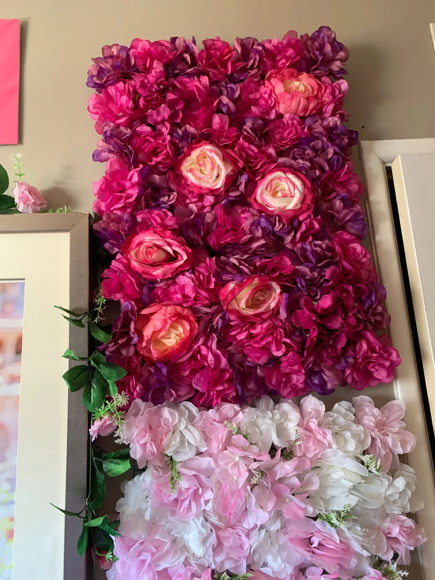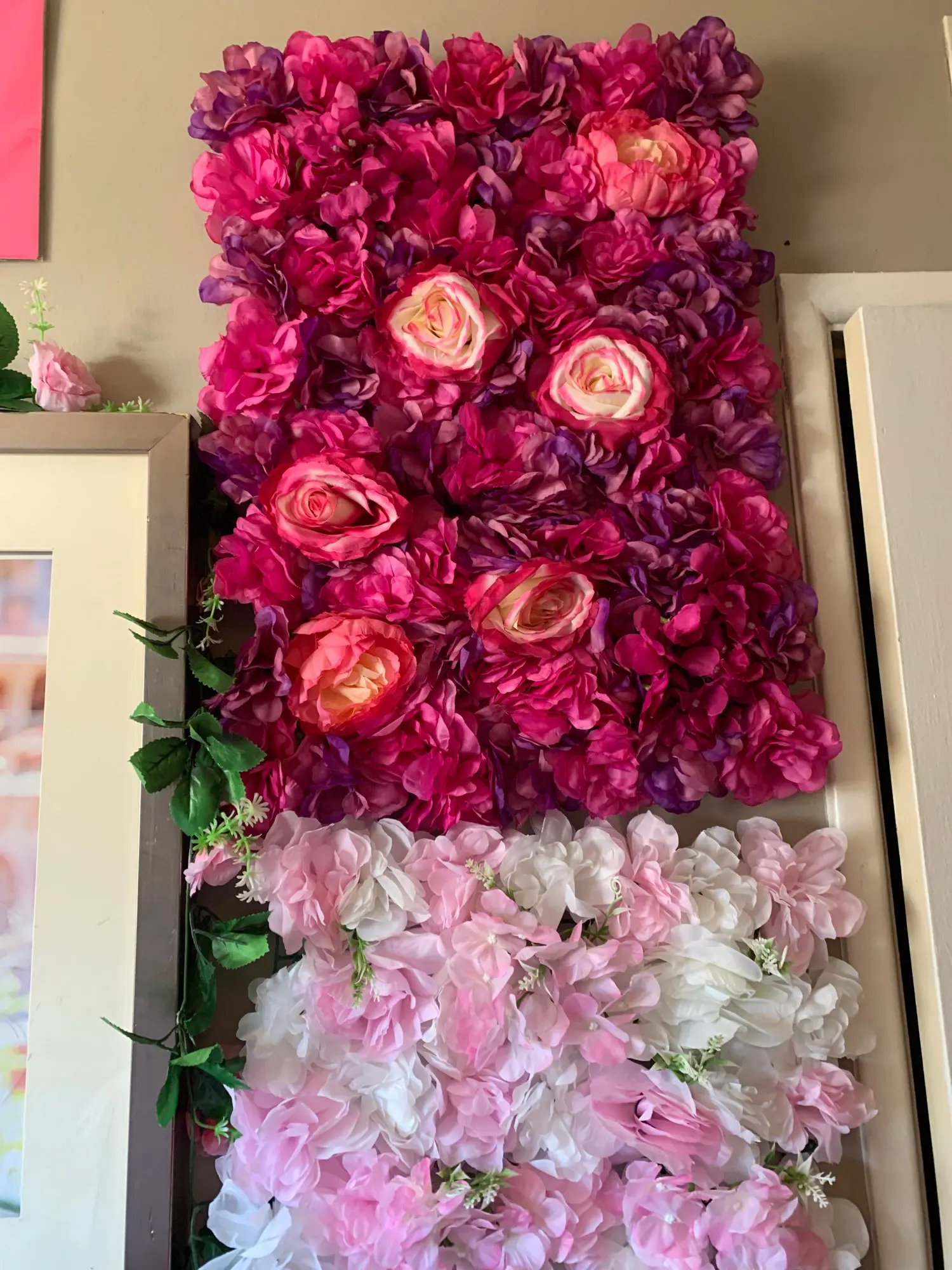 Flores artificiales para decoración de boda paneles de pared de flores de seda rosa, decoración romántica de fondo para boda, 60x40cm