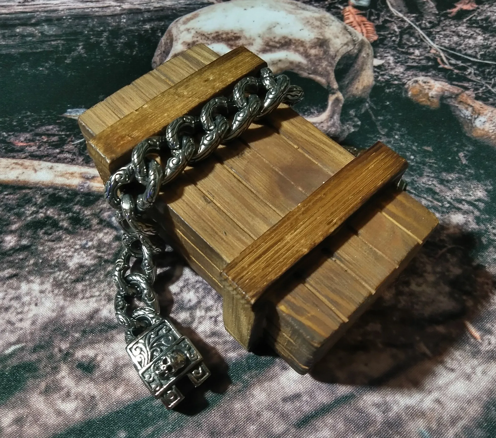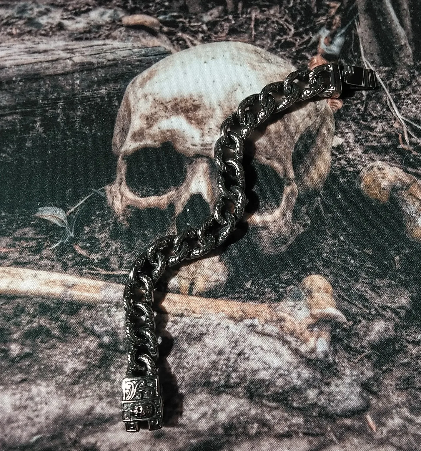 Fongten, brazalete Vintage con calavera cubana, abalorios personalizados de acero inoxidable, cadena de eslabones Curb para hombres