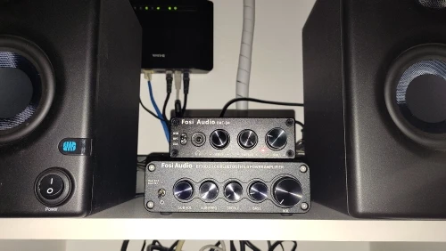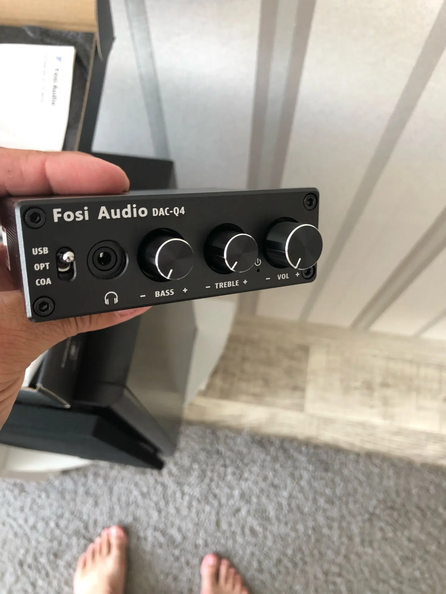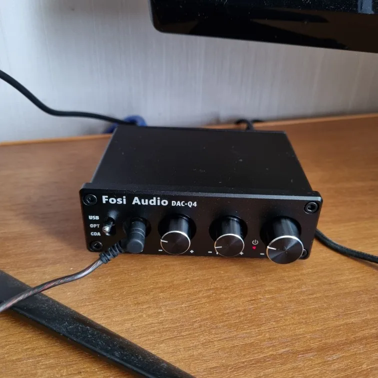 Fosi-DAC-Q4 de Audio Mini estéreo para juegos, DAC y amplificador de auriculares, Adaptador convertidor de Audio para el hogar/escritorio accionado/altavoces activos