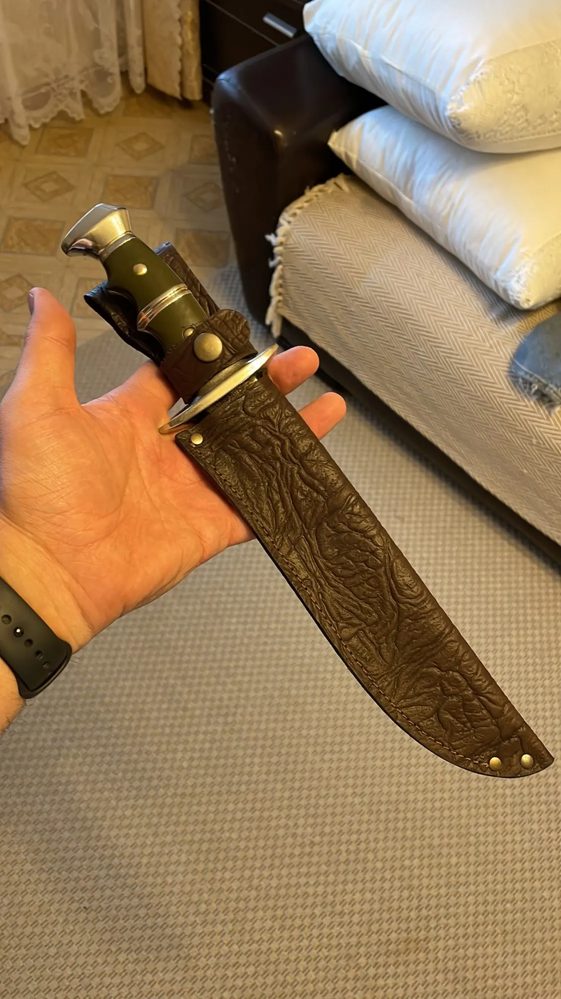 Funda con asa, piel auténtica, estuche para cuchillos (13,15,17,19,21,23x4 cm), excelente calidad con cierre, art 6148
