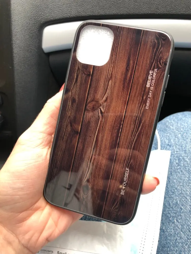 Wood Grain Glass Hybrid Case For iPhone 12 Pro Max Mini