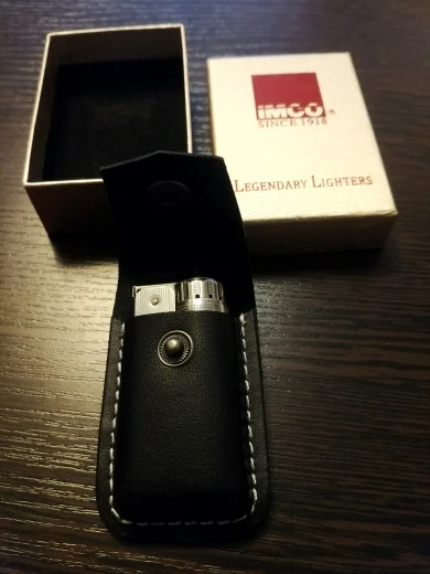 Funda para mechero de marca Austria IMCO de cuero genuino. Caja de cigarrillos negra de moda más ligera, regalo para cigarrillos para hombre