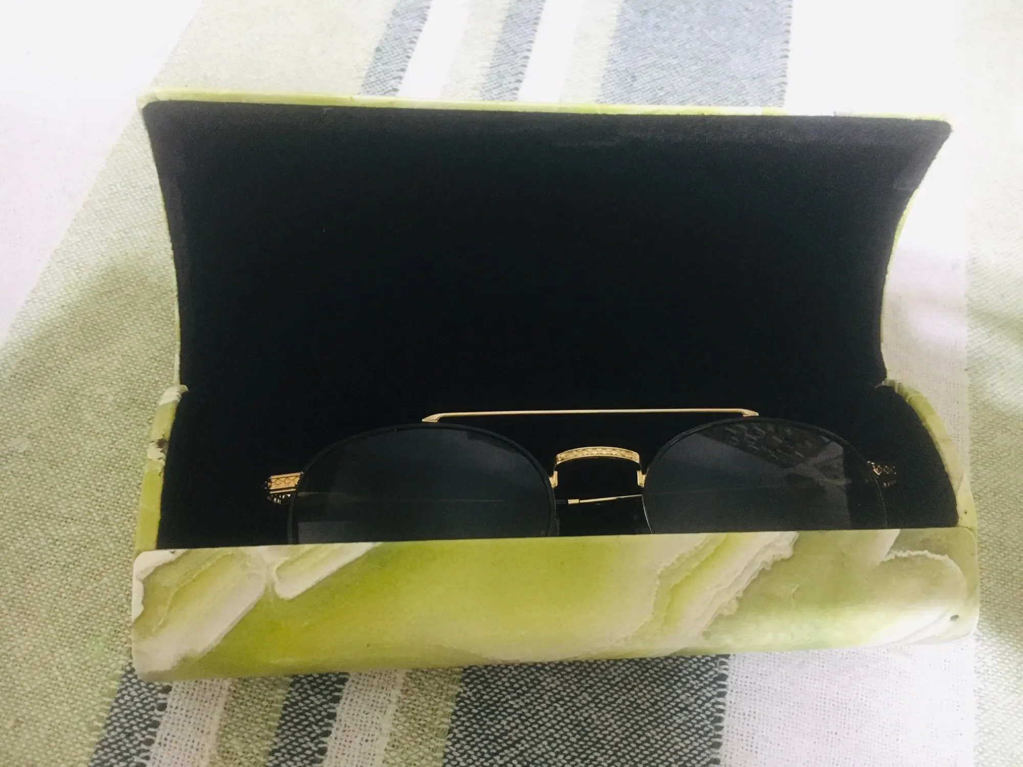 Funda bonita y paquete bien embalado, pero es más pequeña de lo que parece, sólo valen para unas gafas pequeñas o con los cristales rectangulares.