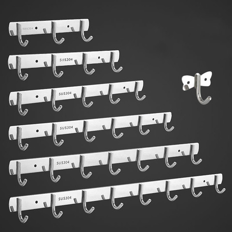 Ganchos de acero inoxidable para baño, gancho de colgar para puerta, montado en la pared, para ropa, bata redonda, 1-7 ganchos, E11768