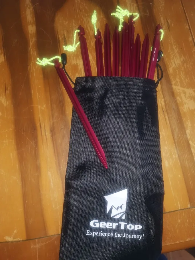 GEERTOP de aluminio ligero de Tent Peg juego de uñas 18 cm con reflectante cordón y bolsa para acampar al aire libre de la lona