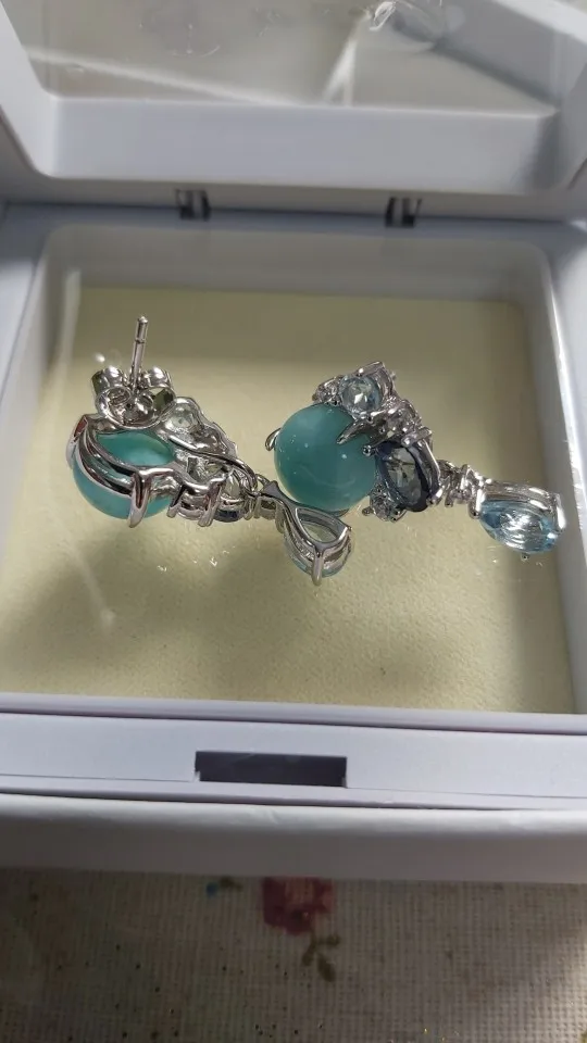 GEM'S BALLET de 925 hecha a mano de plata esterlina desmontable pendientes de piedras preciosas amazonita Natural Topacio Azul Stud pendientes para las mujeres