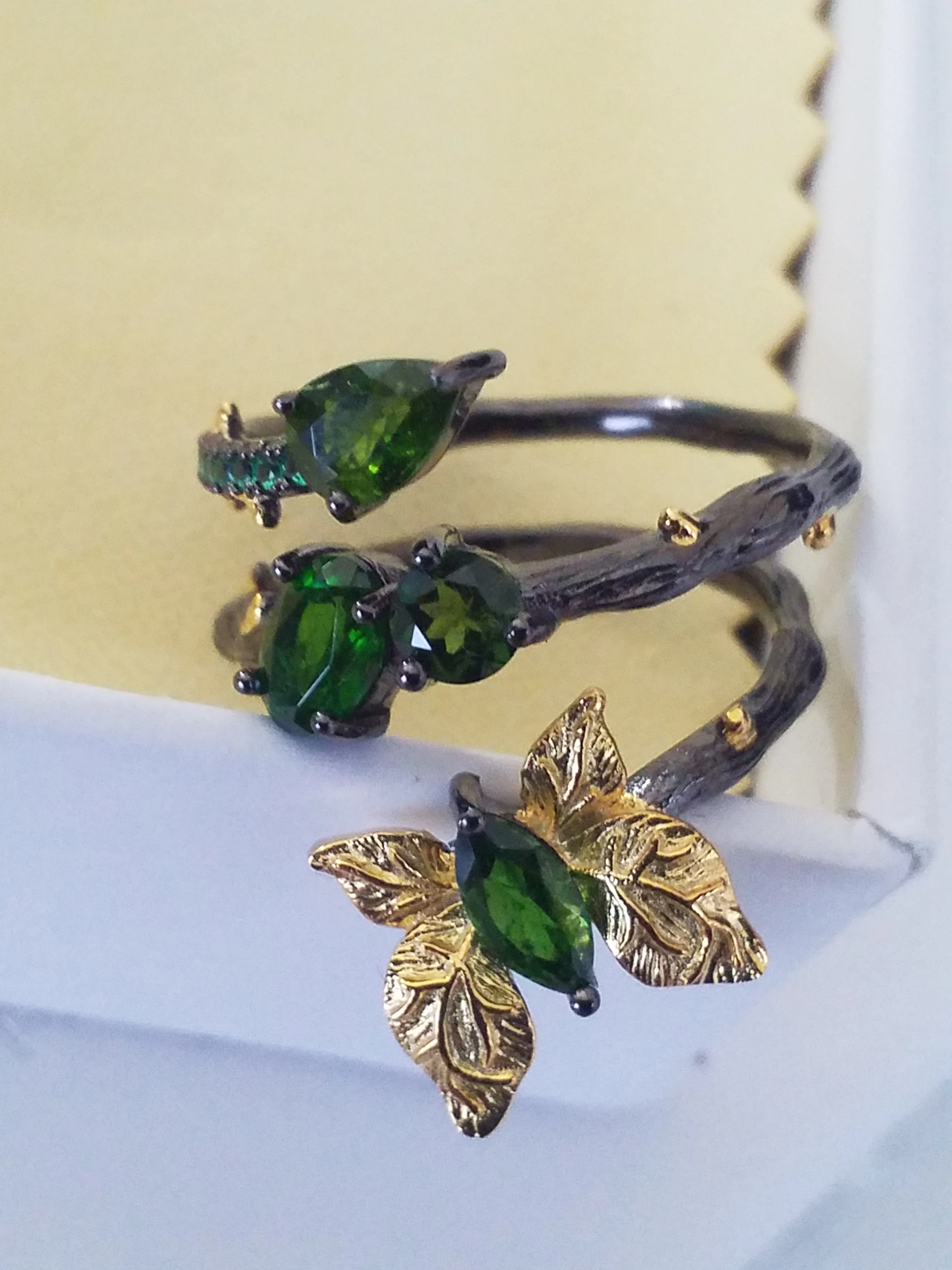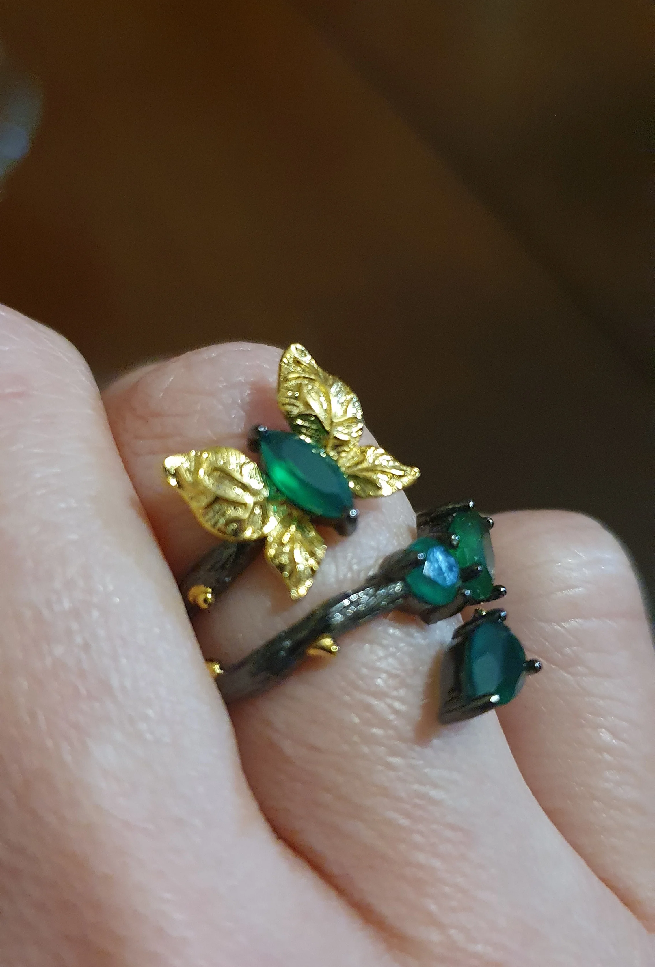 GEM'S BALLET Natural ágata verde mariposa anillo de Plata de Ley 925 anillos Vintage hecho a mano Original Bijoux para la joyería de las mujeres