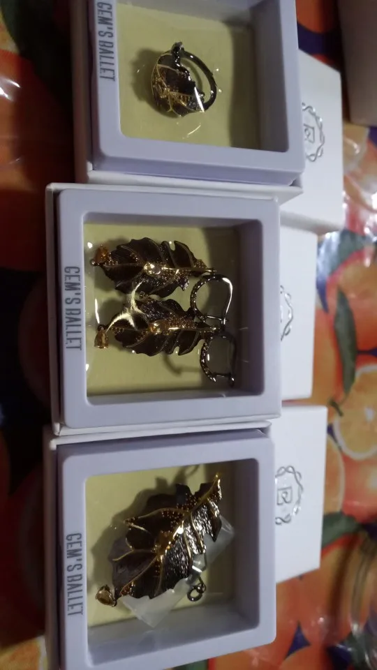 GEM'S BALLET-pendientes de plata de ley 925 hechos a mano con hojas de citrino, conjunto de joyería para mujer, con forma de anillo y colgante