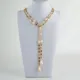 GG Jewelry-collar de cadena larga de 50 ", Perla Rosa cultivada Keshi, Color mezclado, rectangular, Cz pavé
