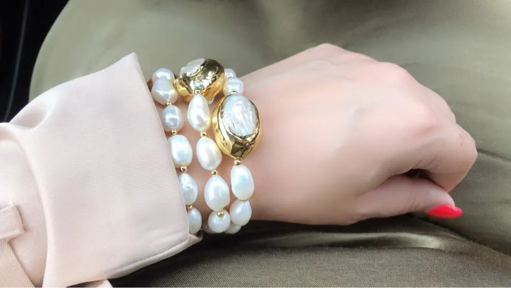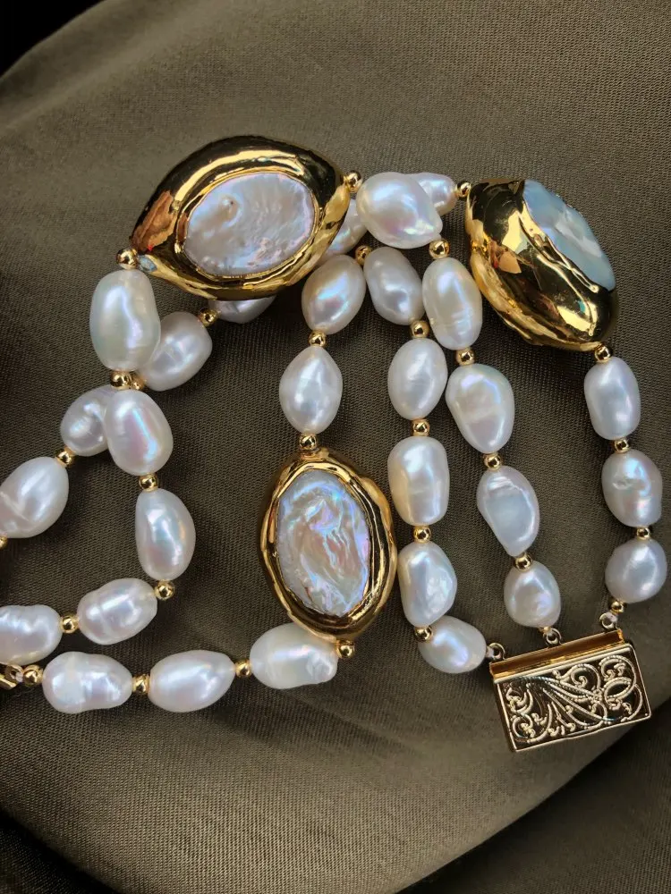GG Jewelry-pulsera de perlas Keshi blancas, perlas barrocas blancas cultivadas, 8 '', 3 filas