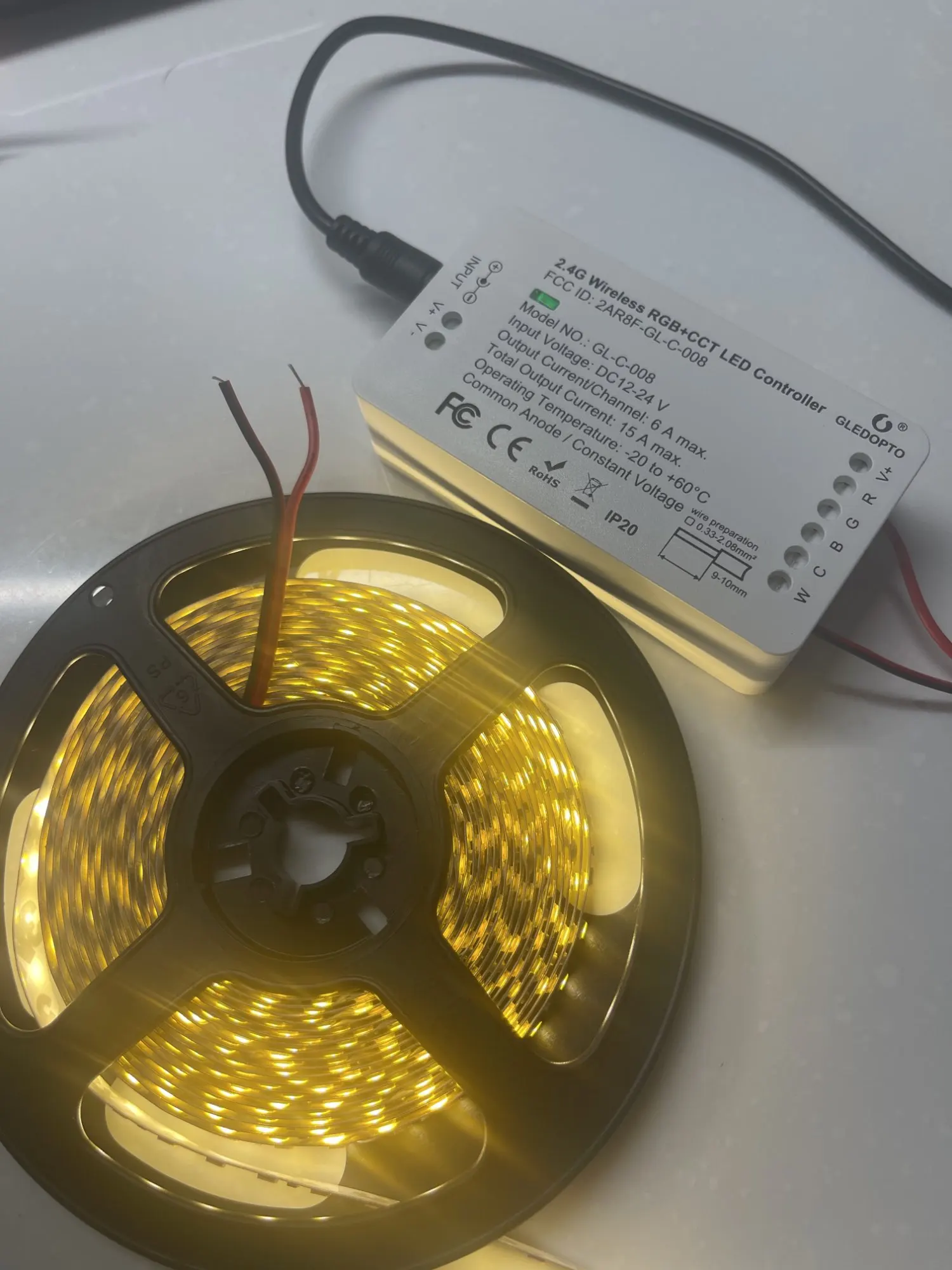 No se cual es el problema pero las conexiones blanco cálido y blanco puro (cables blanco y amarillo de la tira LED) si esta conectados se encienden, pero desde la app de Alexa conectado a un Echo Plus no se pueden controlar. No las enciende ni las apaga. Se quedan siempre encendidas. Sin embargo con Alexa puede controlarse sin problemas el LED RGB, enciende y apaga y cambia los colores y la intensidad. I don't know what the problem is, but the warm white and pure white connections are connected (white and yellow cables of the LED strip) the light up, but from Alexa app (connected to an Echo Plus) they cannot be controlled. It does not turn them on or off. They always stay on. However, with Alexa the RGB LED can be controlled without problems, it turns on and off and changes the colors and intensity.