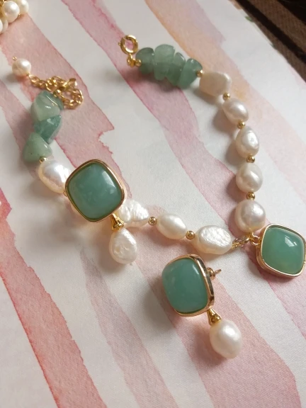 GLSEEVO barroco Natural perla coloreado de verde de cristal de Stud pendientes para las mujeres de novia regalo de boda doble uso pendientes joyería GE0767D