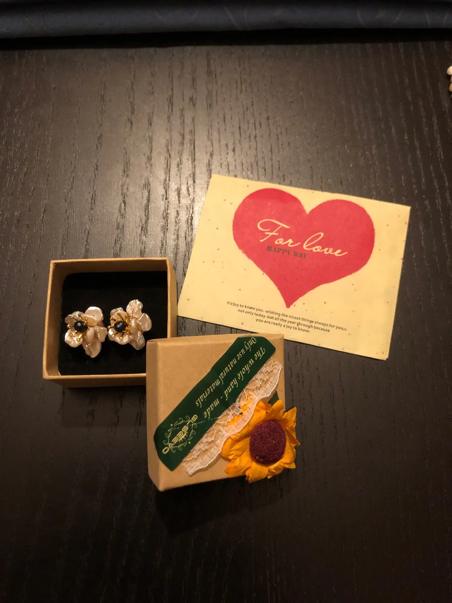 entrega muy rápida, viene con bolsita de cartón y cajita es ideal para regalar..muy buena presentación.Ademas trae un paño de limpieza y bolsita de terciopelo con la tarjeta de información del vendedor.Muy bonitos,algo pesados pero es normal por las perlas.Muy bien embalado sin desperfectos.El vendedor puso un llavero de regalo.