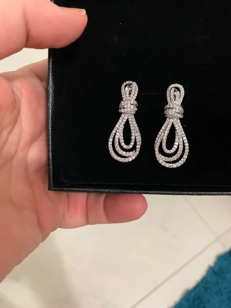 GODKI 39mm Bowknot Full Mirco Paved Micro Zirconia mujer vestido de novia boda todos los días gota pendiente joyería de moda