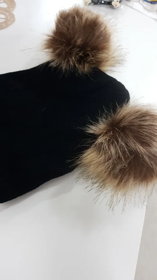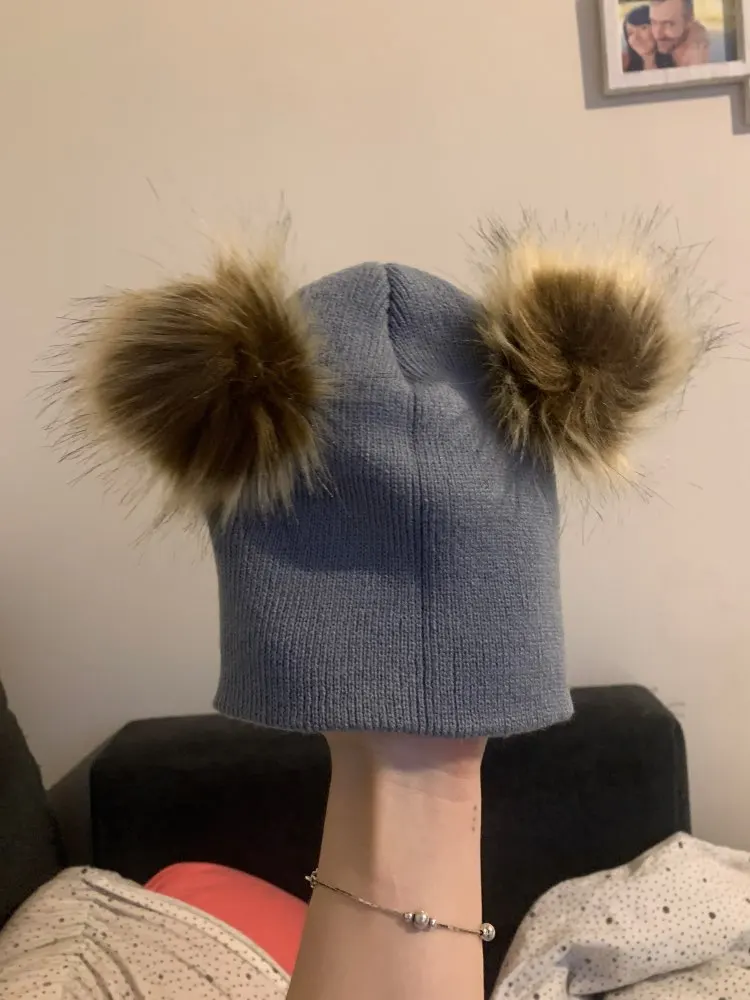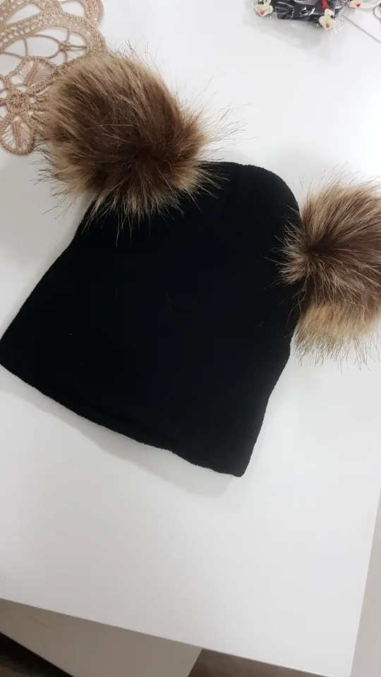 Gorros con pompones para niños y niñas, gorros con doble piel, de punto, color sólido, para invierno