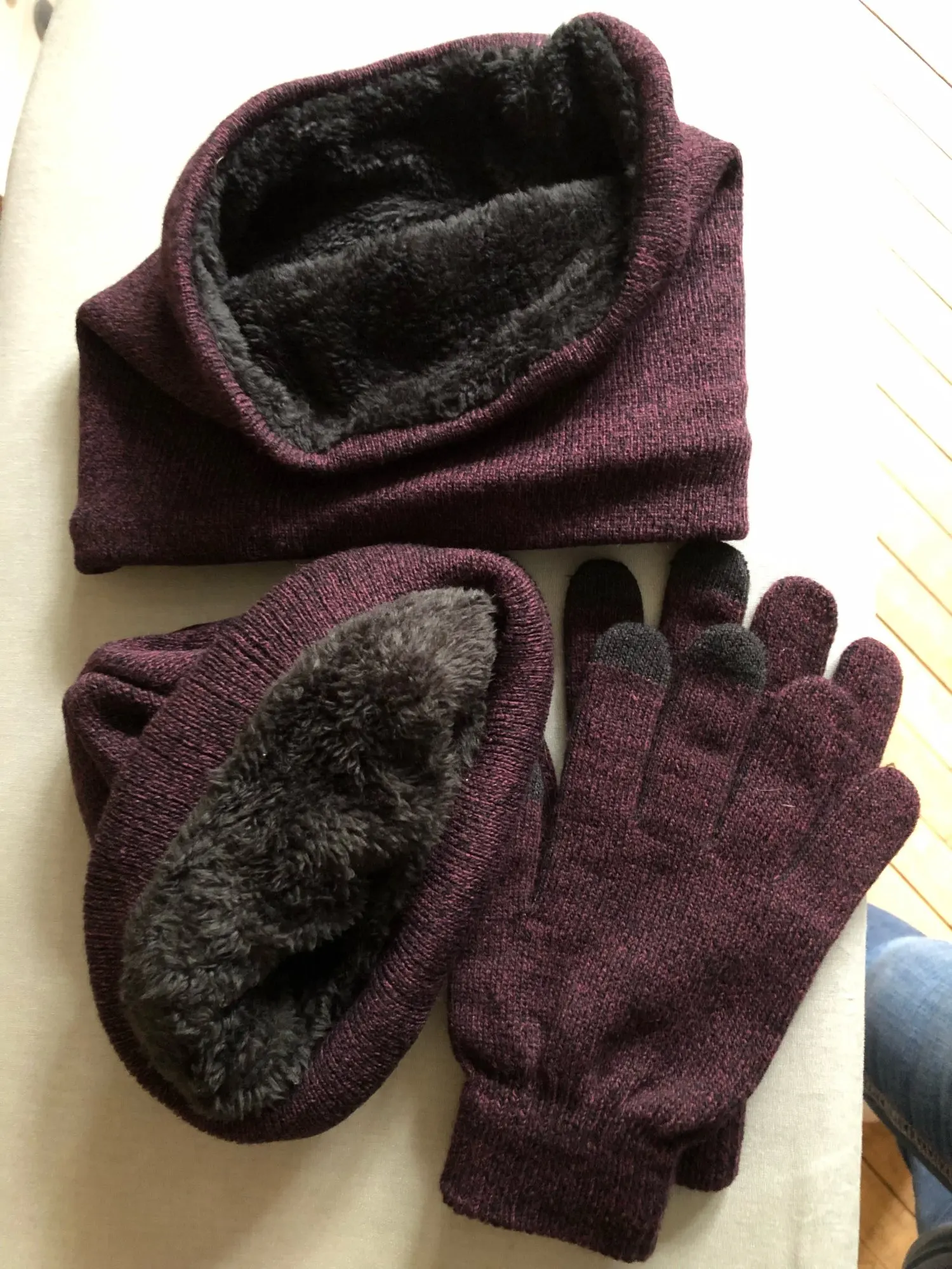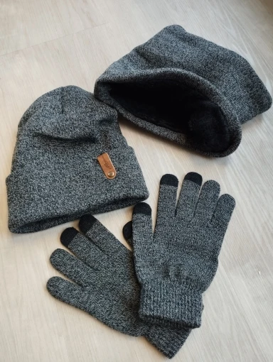 Gorros Unisex con anillo con diseño de sombrero, conjunto de guantes de bufanda, gorro grueso de punto cálido, Unisex, sólido, Retro, gorro, guantes suaves para pantalla táctil