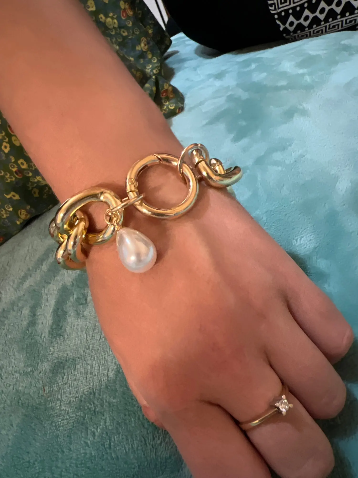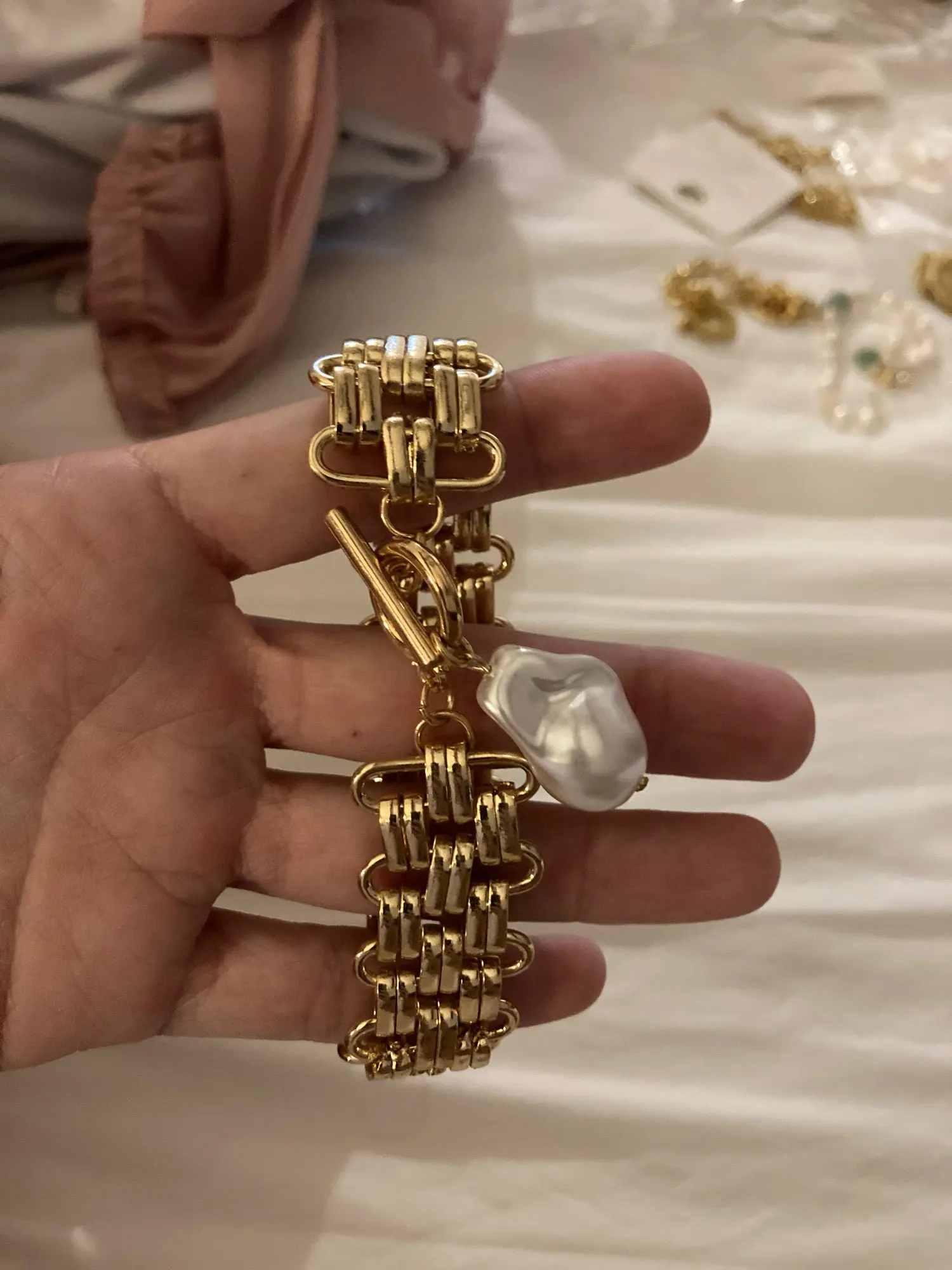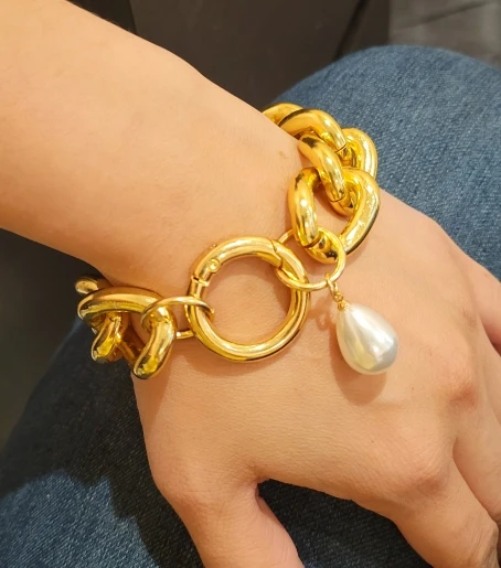 Goth gran imitación de colgante de perla pulsera brazalete de las mujeres hombres brazalete Hip Hop de Metal pesado grueso cerradura cadena pulseras joyería de mano