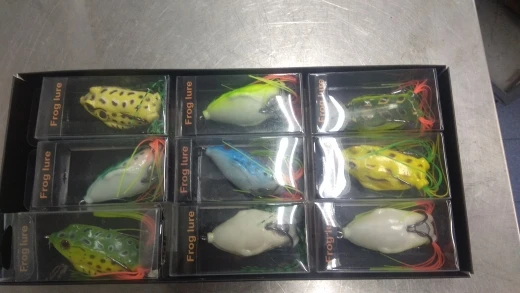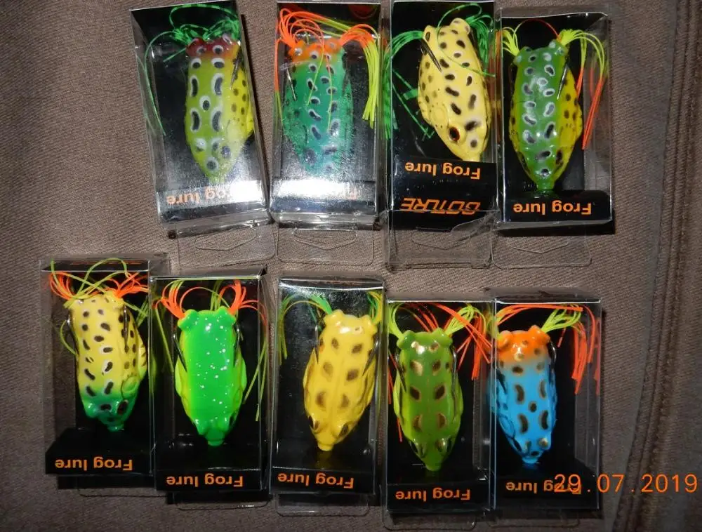 Goture 9 unids/set rana de señuelo de Pesca 5,5 CM 12,5G Topwater Pesca Wobblers suave cebo Artificial para cabeza de serpiente de Pesca Isca