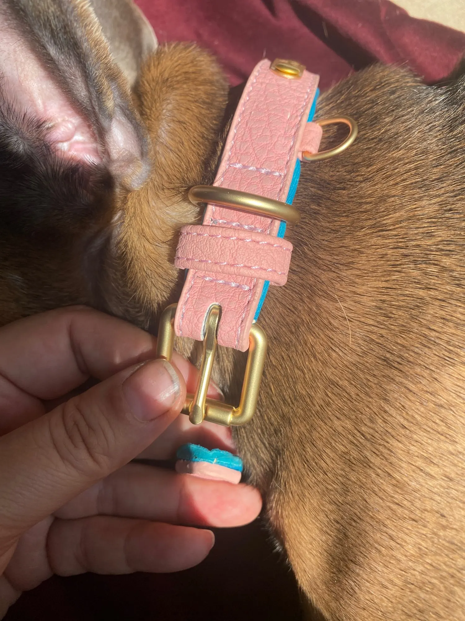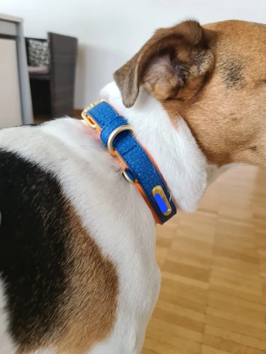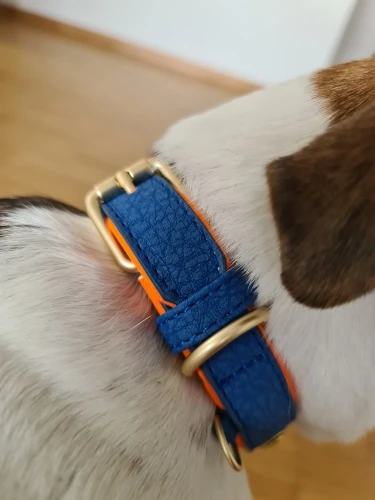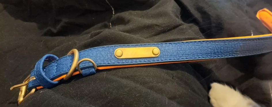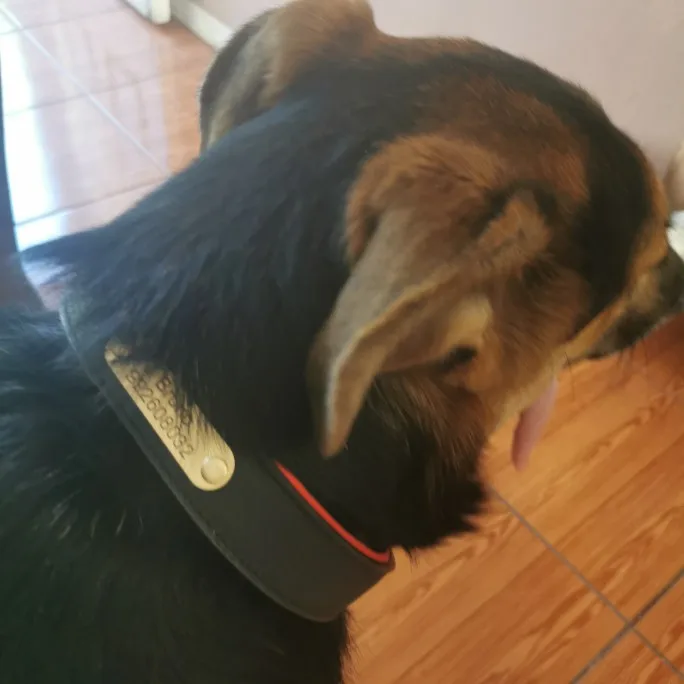 es una muy buena compra sin embargo cuando la compre decía que era cuero, no piel sintética, pero si está resistente además se ve que no le incomoda a mi perro, tengo un Husky hembra de 8 meses de edad casi y le queda muy bien, mide 52 cm de punta a punta y si no me.equivoco el diámetro máximo de agarre sería de 45 cm adjunte una foto con flexometro por si tienen dudas de la dimensión
