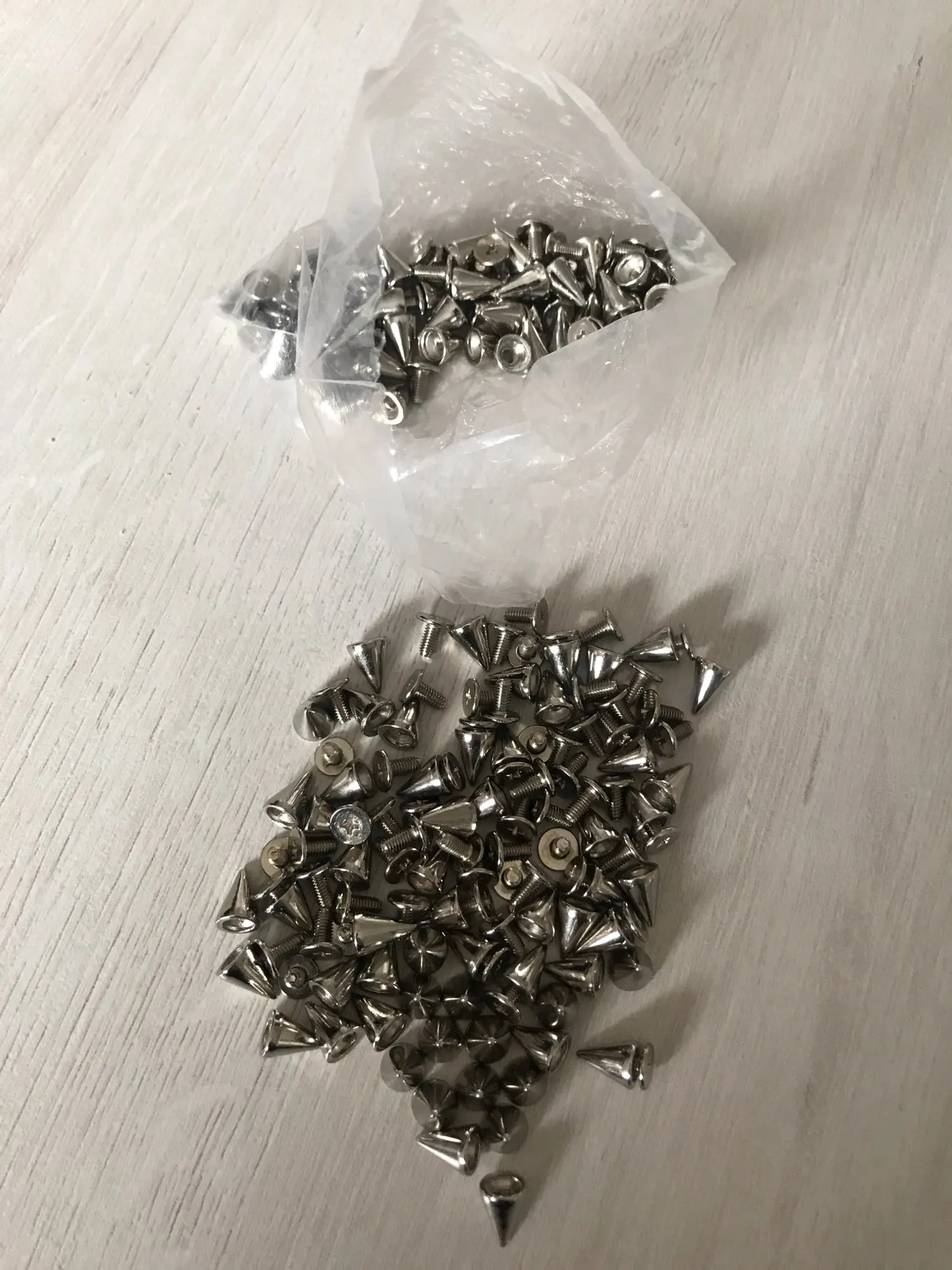 ¡Gran oferta! Tachuelas cónico plateado Punk para manualidades, 100 Uds., 9,5mm, venta al por mayor, envío directo