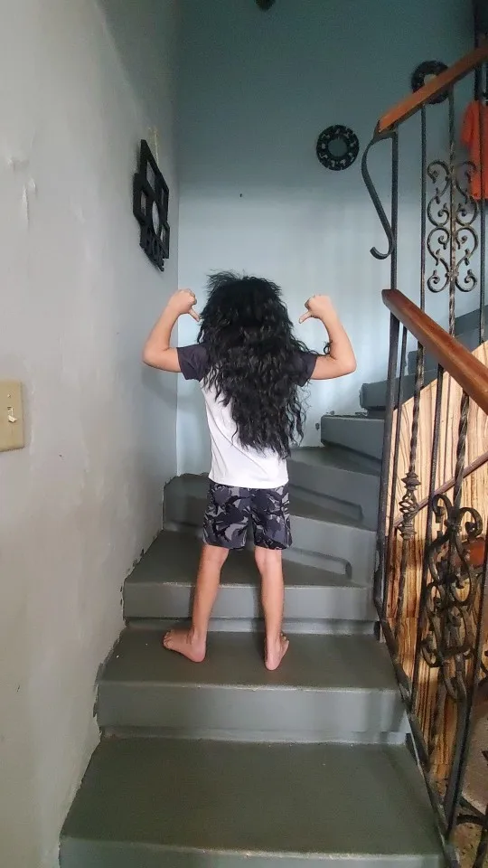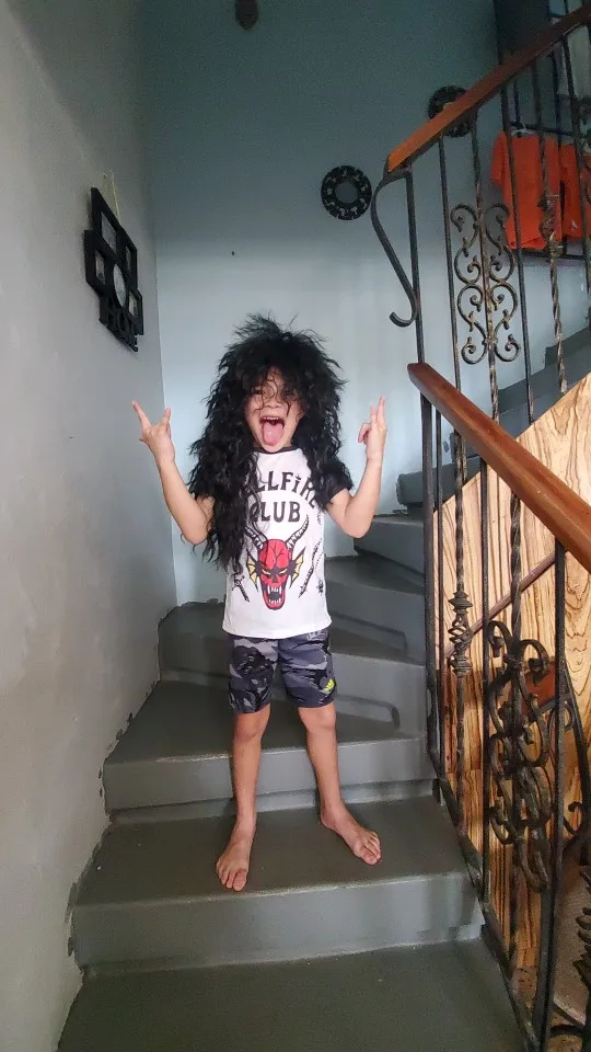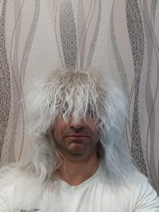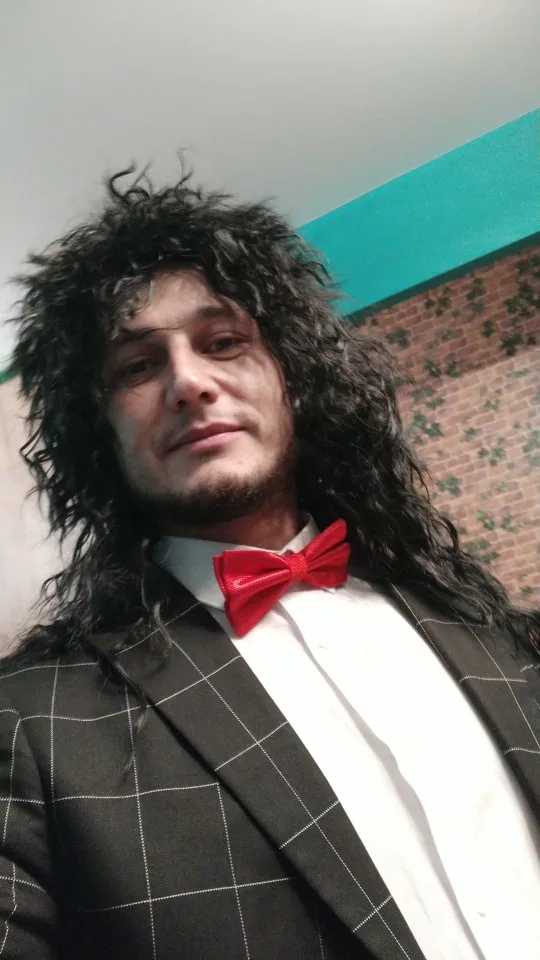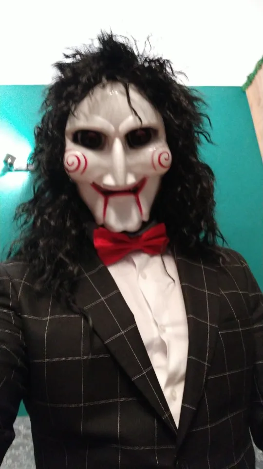 Gres-Peluca de cabello sintético largo para hombre y mujer, postizo de pelo femenino de Color negro, cabeza hinchada Punk para Halloween, fibra de alta temperatura