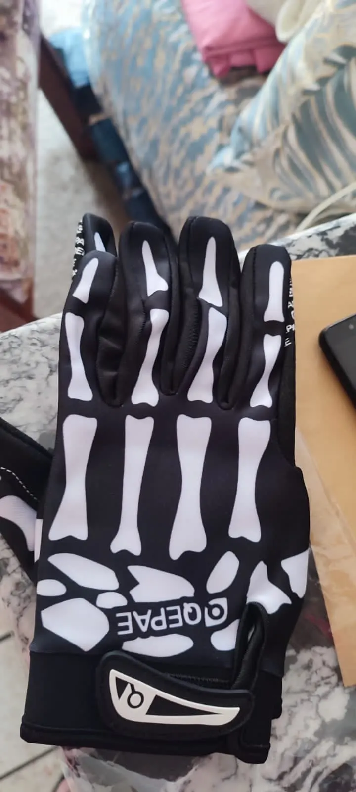 Guantes de ciclismo para hombre y mujer, con grafiti de Calavera, GEL de silicona antideslizante, para bicicleta de montaña y de dedo completo, para deportes de bicicleta