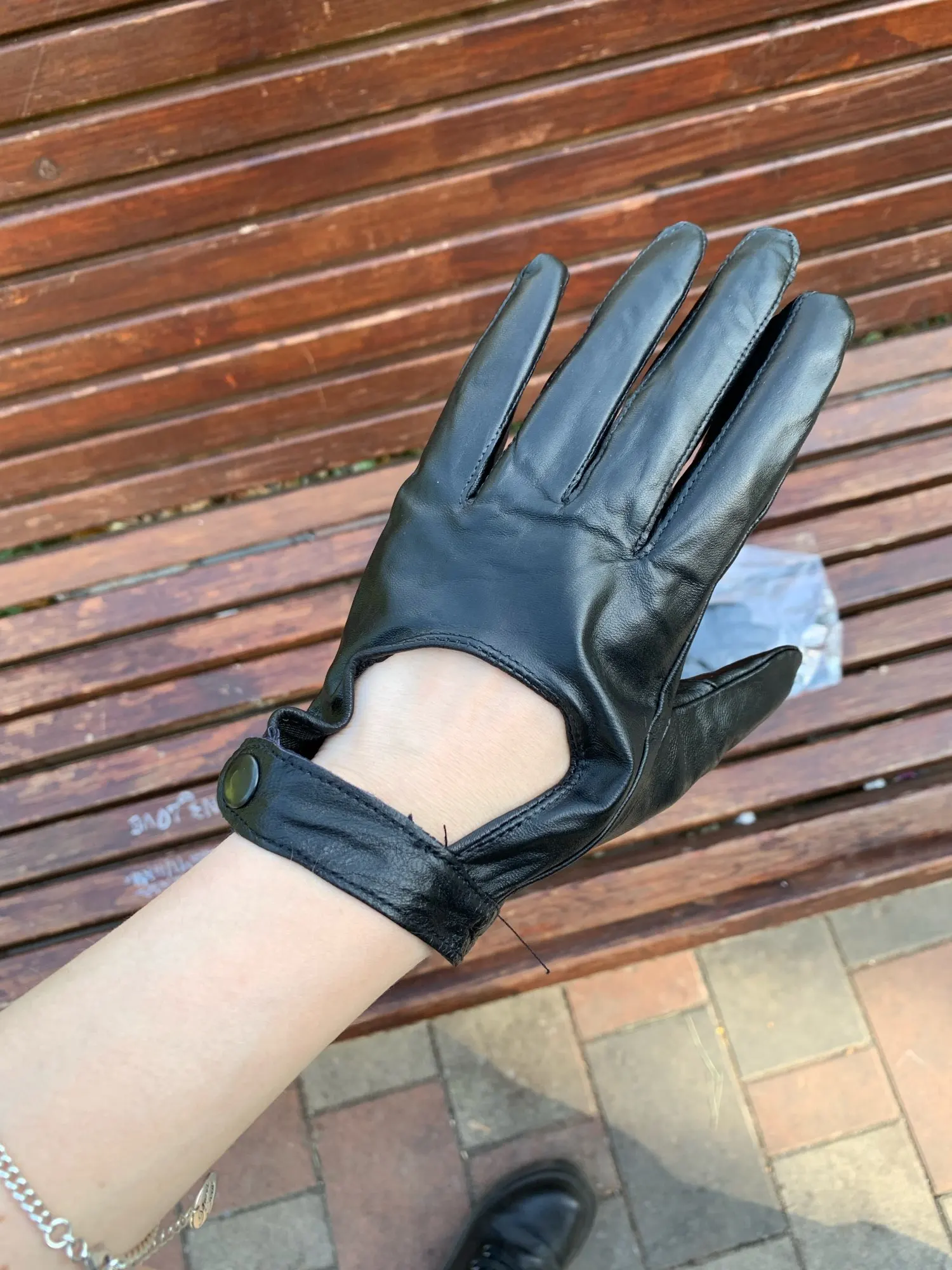 Guantes de cuero Natural con remaches para mujer, de estilo Punk, cuero genuino, ahuecados, rojo y verde, guantes de conducción para motos R749
