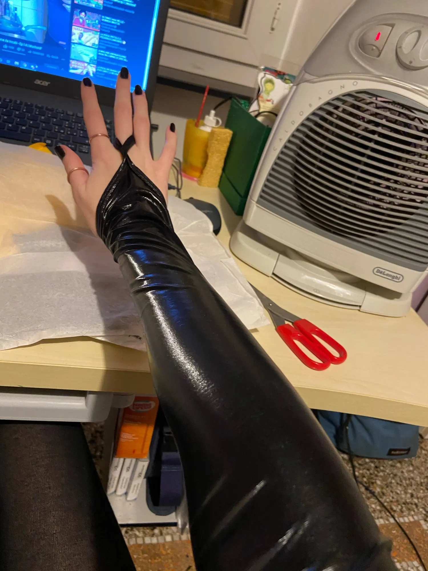 Guantes elásticos y brillantes para mujer, negros, para brazo excluyendo dedos, a la altura de la parte superior, 2022