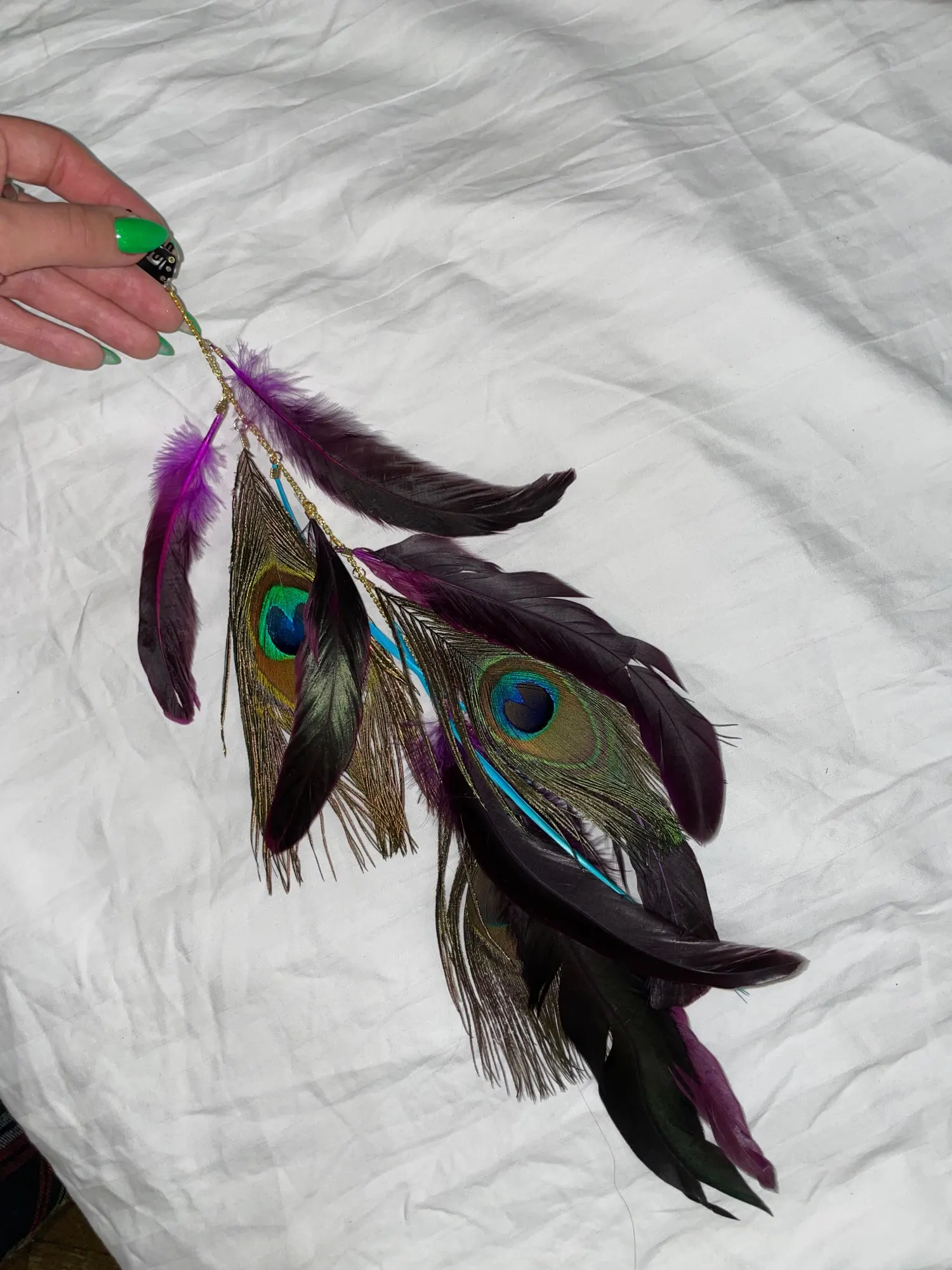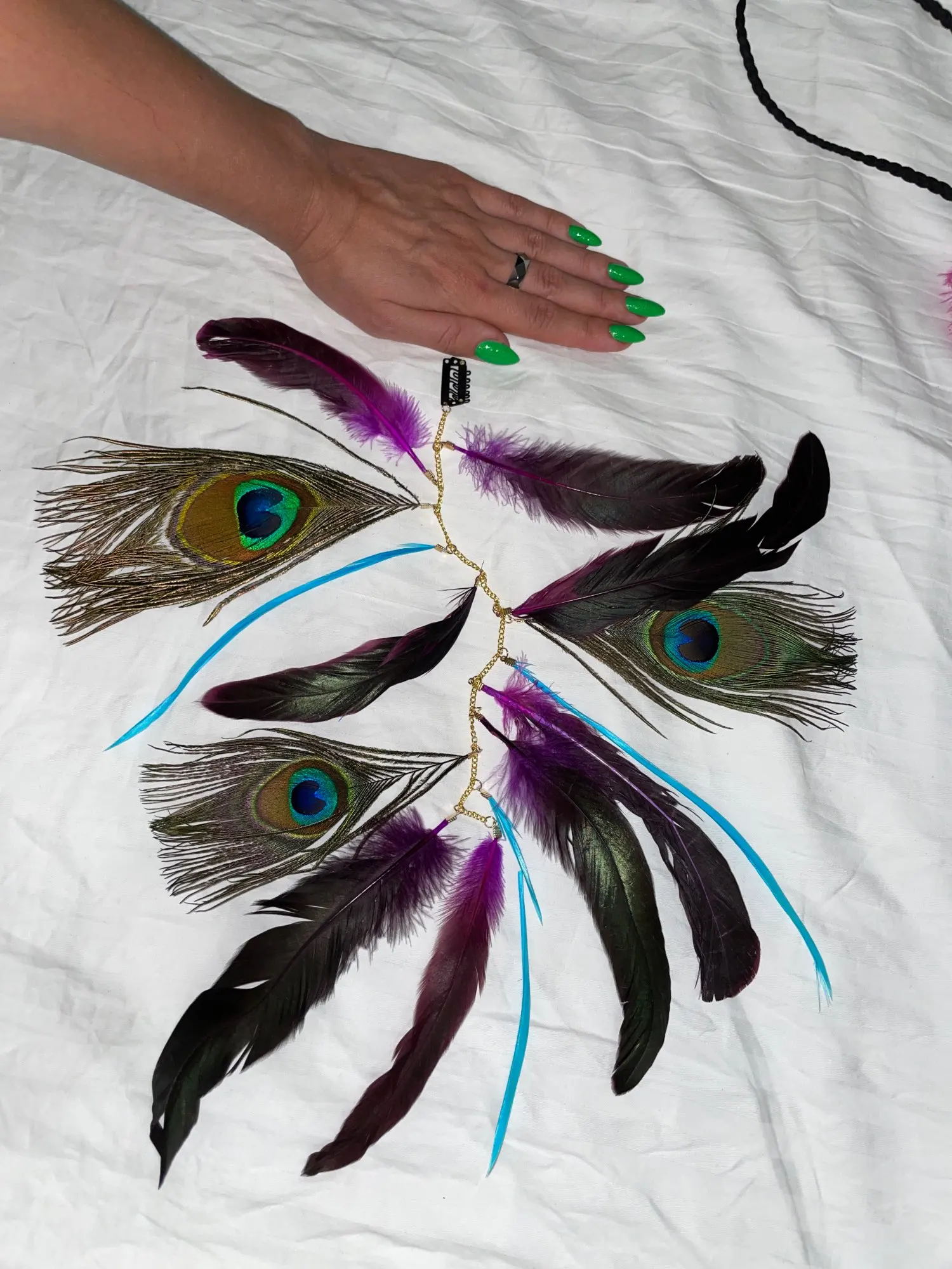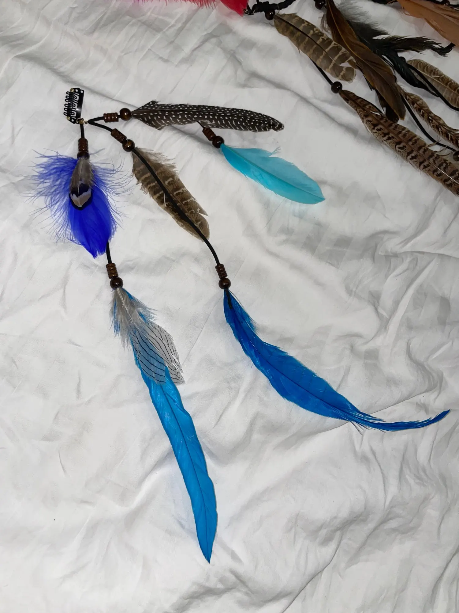 hermoso colgante con ajuste para prender en el.cabello. lindas plumas