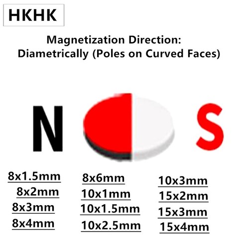 Hall imán neodimio NdFeB imán 8x1,5 8x2 8 2 8 2 8 2 8x3 8x4 6x8 10x10x1,5 10x3 15 2x15x3 15x4 10x1 10x10x2,5mm diametralmente magnetizado N45H
