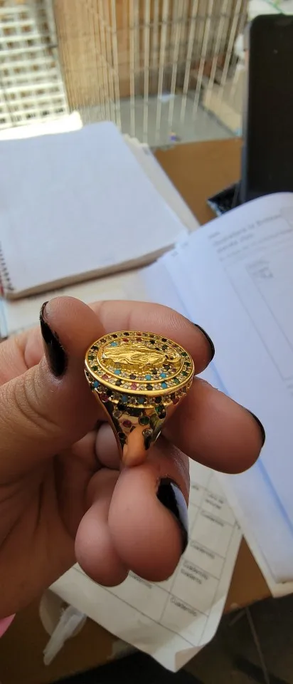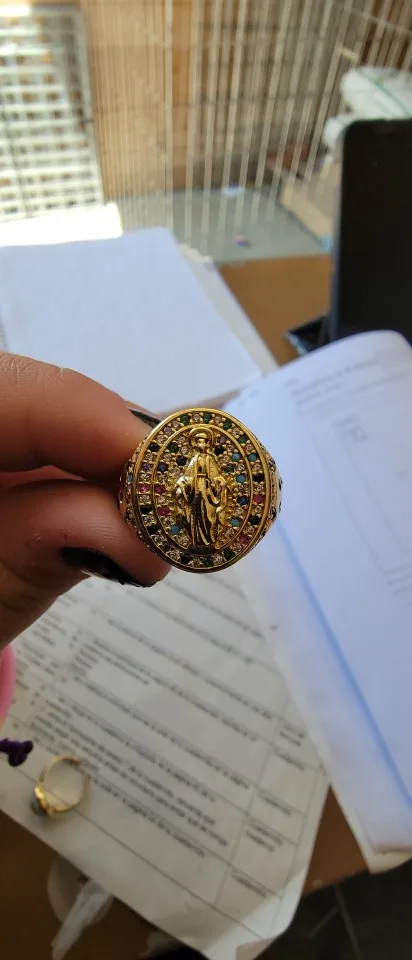 HECHENG-anillo chapado en oro de la Virgen María para mujer y hombre, de cobre CZ, anillo Iced Out, joyería de Hip Hop, envío directo, venta al por mayor