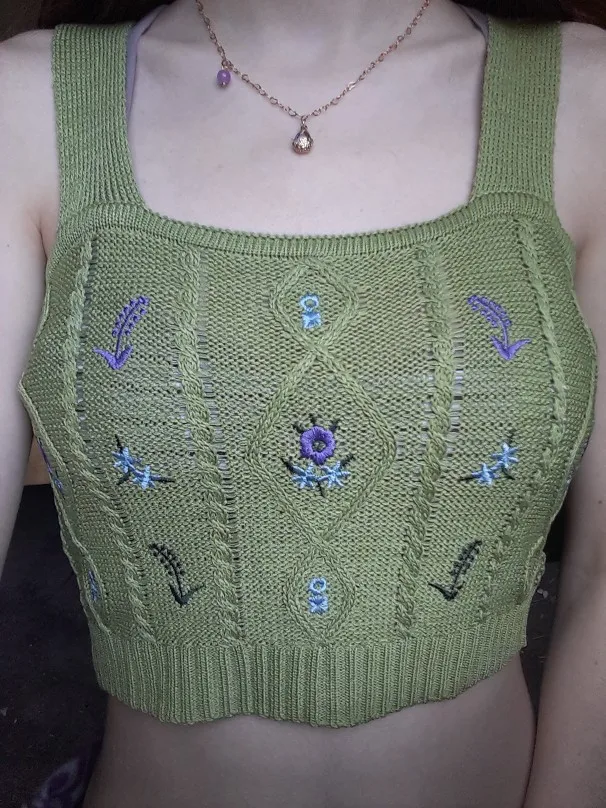 HELIAR-Tops cortos con bordado de flores para mujer, camisetas sin mangas con cuello en V, blusas cortas tejidas elásticas, Tops cortos con tirantes para mujer