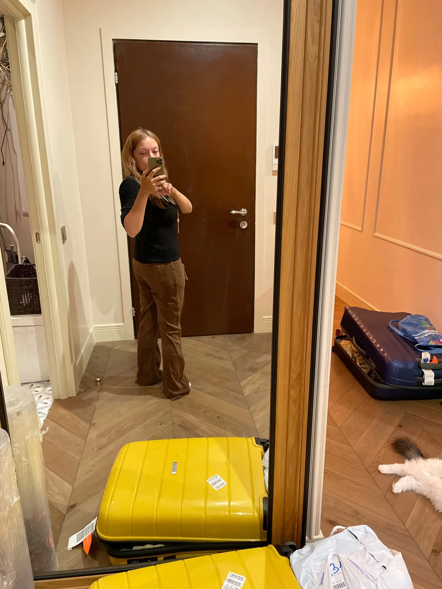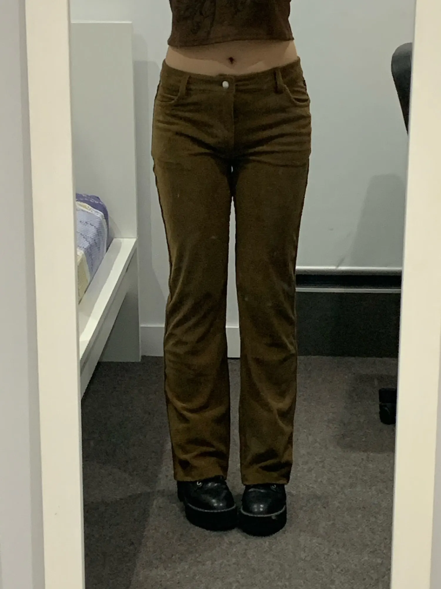 HEYounGIRL otoño PANA Casual marrón largo Pantalones mujer cintura media ajustados pantalones Capris moda fina Y2K 90s pantalones de ejercicio con bolsillos