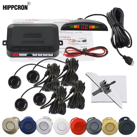 Hippcron-sistema de radar para aparcar marcha atrás, juego de 4 sensor de aparcamiento con led para coche, 22mm, sistema de radar para aparcar marcha atrás 12V, 8 colores