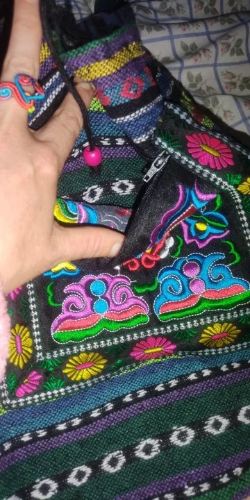 Hmong-mochila étnica Bohemia con bordado de la India, bolso bohemio hippie, mochila, tamaño L, SYS-170E