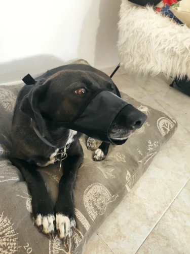 perfecto, tela de calidad y resistente. por dentro tiene una especie de cuero mas suave para el perro. Antes de comprar revisad bien la talla pues es importante porque el bozal no es regulable.