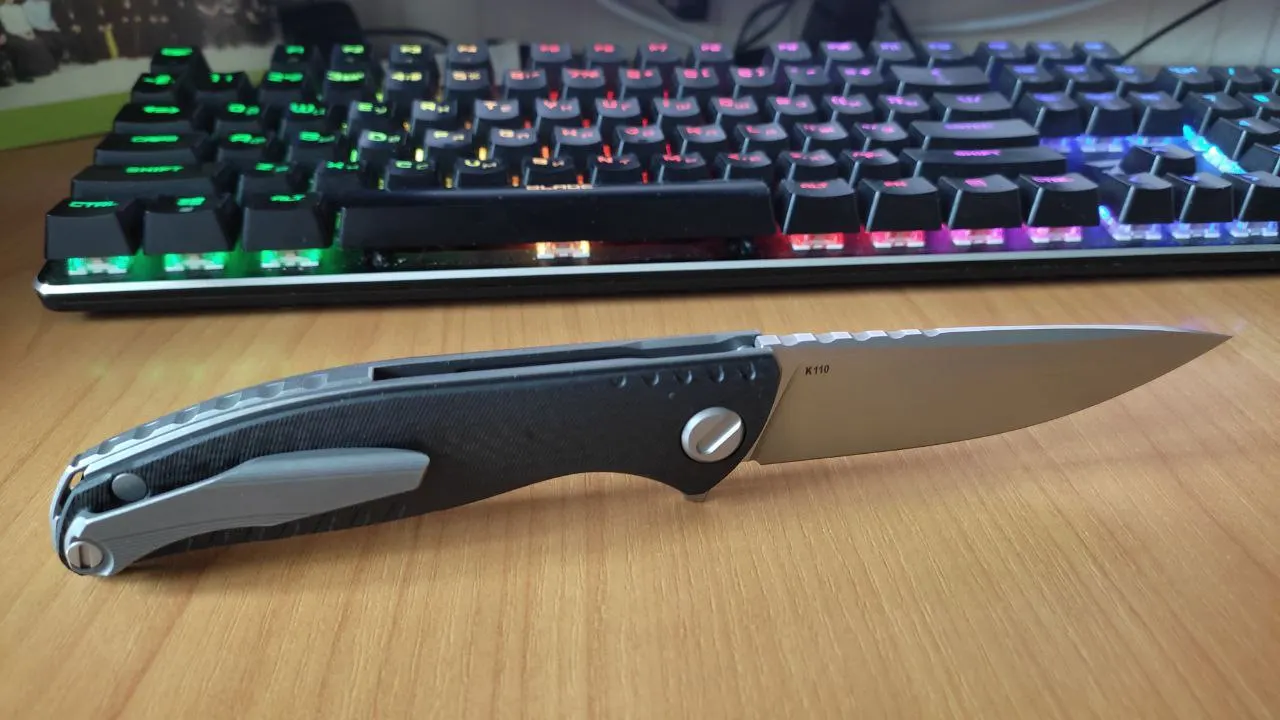 Hoja de titanio + mango de fibra de carbono para acampar al aire libre, cuchillo de fruta plegable práctico para caza, herramienta EDC, espina verde, f3ns D2