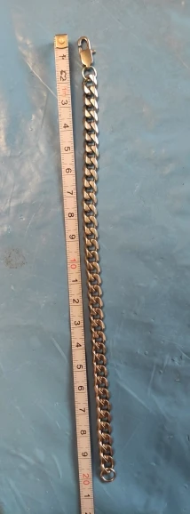 bonita pulsera, no se pone fea, la anchura elegida es adecuada y discreta para la muñeca del hombre, es preferible si se tiene dudas , pedir el tamaño mayor de la longitud de la pulsera, pues acortar los eslabones es sencilo, el cierre aunque grande, requiere de cierta habilidad para abrirlo o cerrarlo, el envio ha sido muy lento, pero recomiendo el producto