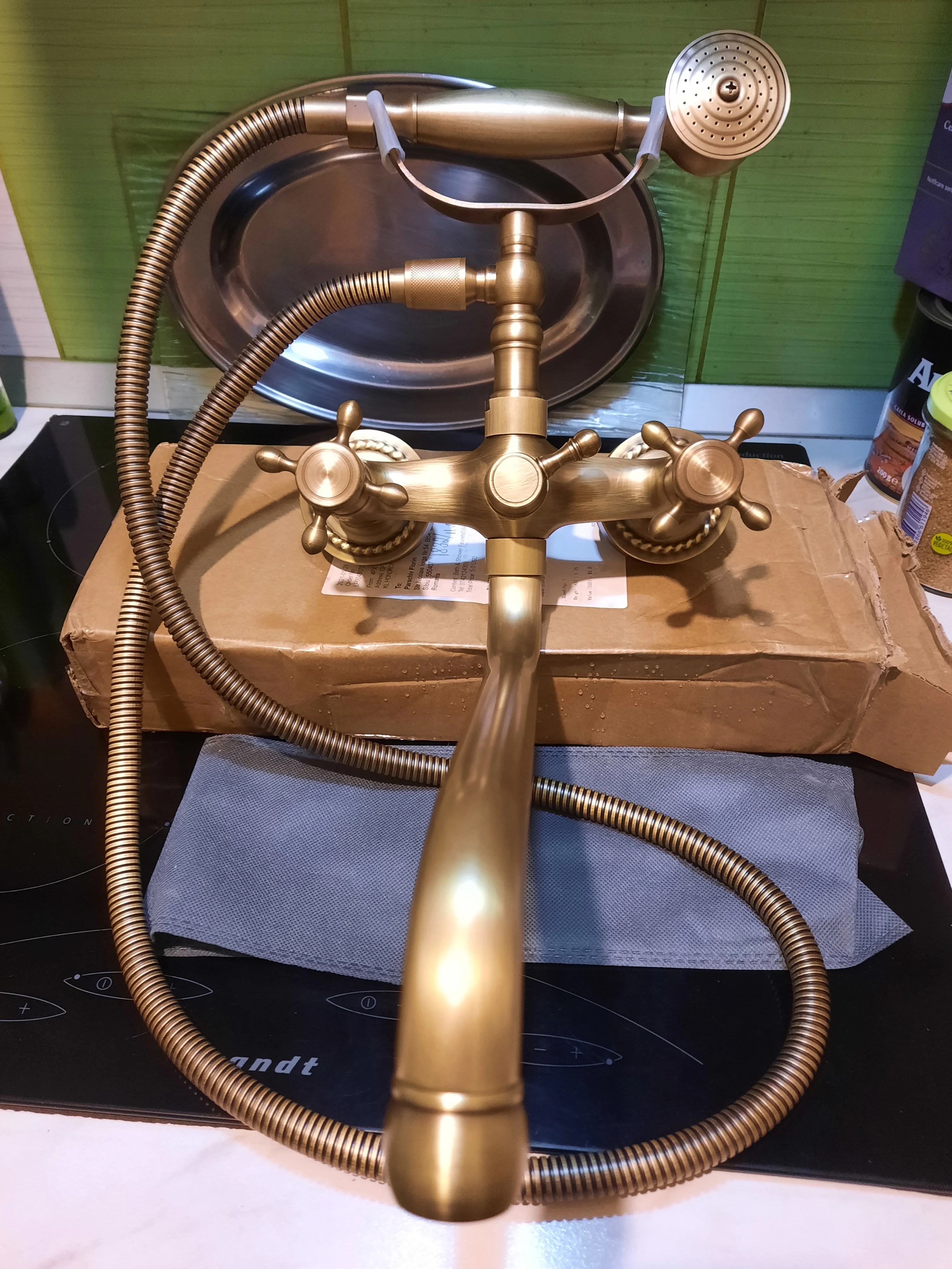 HOTAAN-Juego de grifo de latón giratorio para bañera, mezclador de agua de 30cm de longitud, Grifo de ducha de baño de cuerpo de latón con cuatro manija